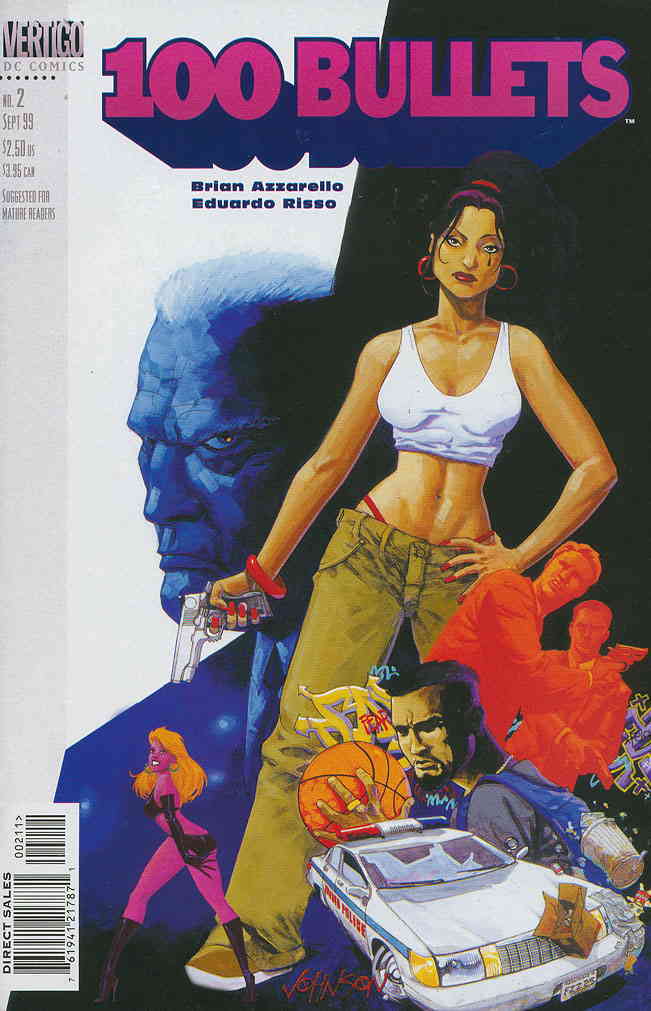 Item: 100 Bullets #2 | Publisher: DC/Vertigo | Cover Date: September 1999 | Writer: Brian Azzarello | Artist: Eduardo Risso | Cover Artist: Dave Johnson | Notes: 1st appearance of Joseph Shepherd | With Economy shipping, each additional comic ships for just 50 cents more to customers in the USA. This listing contains a stock photo and information from ComicBase™ and © Human Computing. The stock photo is for reference only. If you would like to see a photo of the actual item, please message us prior to purchasing.Seller Information