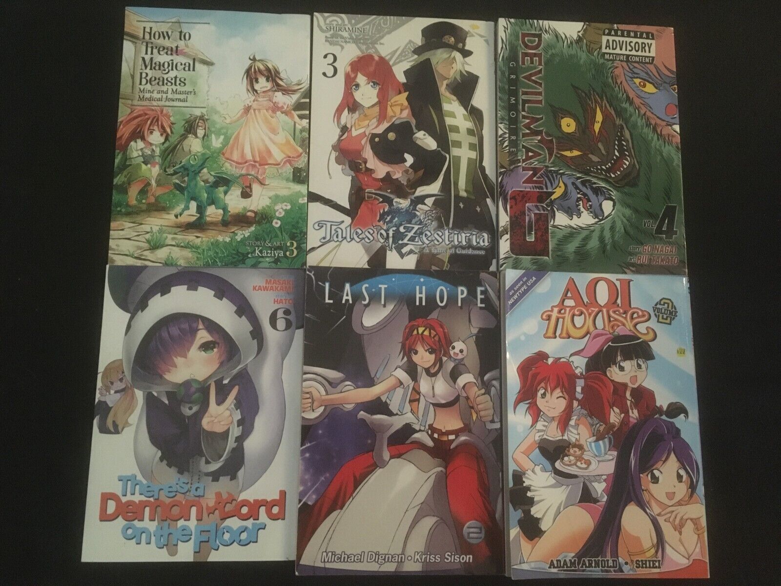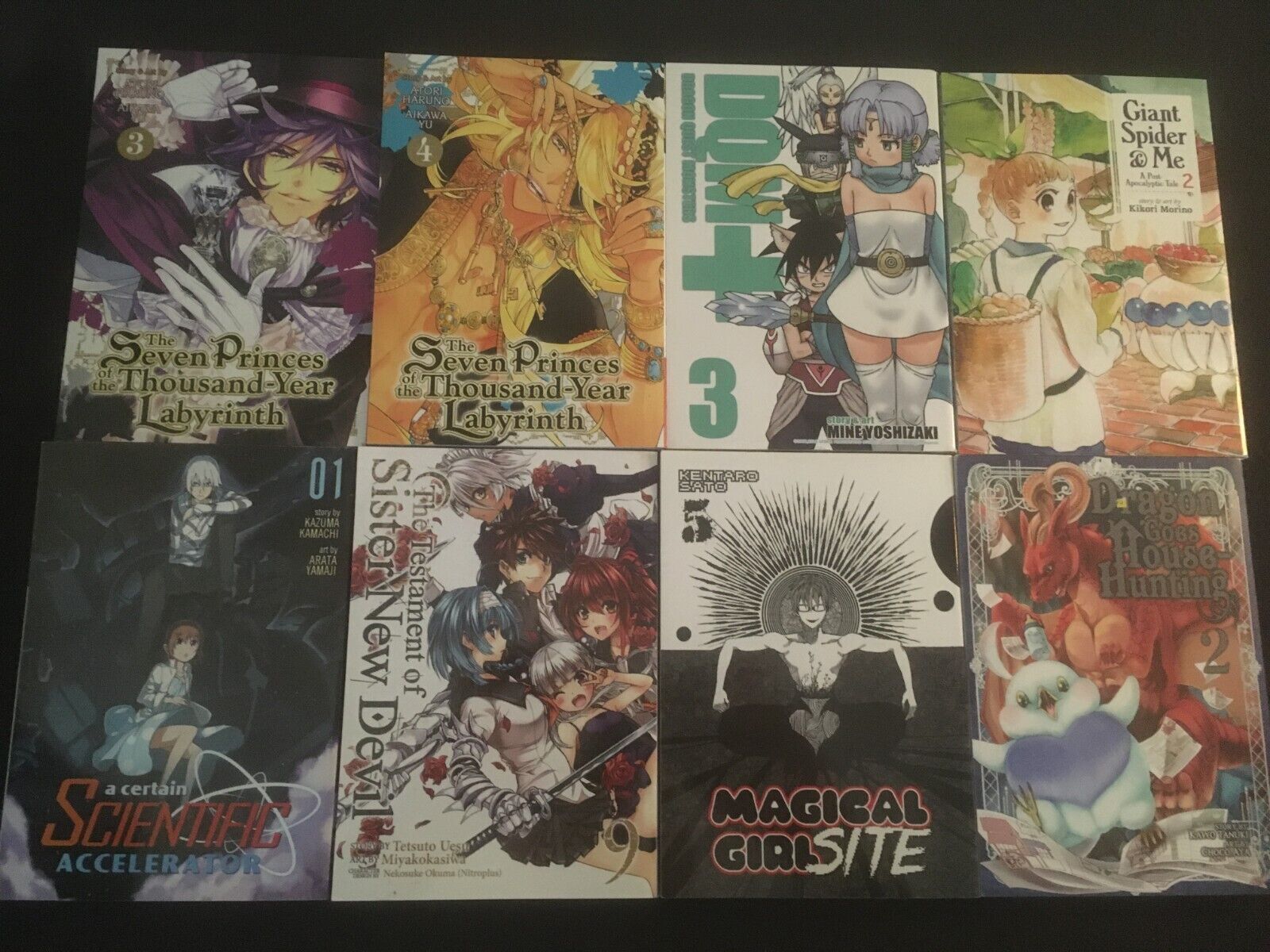 14 softcover manga graphic novelsThe Seven Princes of the Thousand-Year Labyrinth Vol. 3, 4 VG conditionDragon Quest Monsters + Vol. 3 VG+ conditionGiant Spider & Me Vol. 2 VG+ conditionA Certain Scientific Accelerator Vol. 1 VG- condition(crease on front cover)The Testament of Sister New Devil Vol. 9 VG+ conditionMagical Girl Site Vol. 5 VG+ conditionThere's a Demon Lord on the Floor Vol. 6 VG conditionDragon Goes House-Hunting Vol. 2 VG+ conditionHow to Treat Magical Beasts Vol. 3 VG conditionTales of Zestiria Vol. 3 VG conditionDevilman Grimoire Vol. 4 VG+ conditionLast Hope Vol. 2 VG+ conditionAOI House Vol. 2 VG- condition(crease on front cover)No shipping charge for additional itemsSeller Information