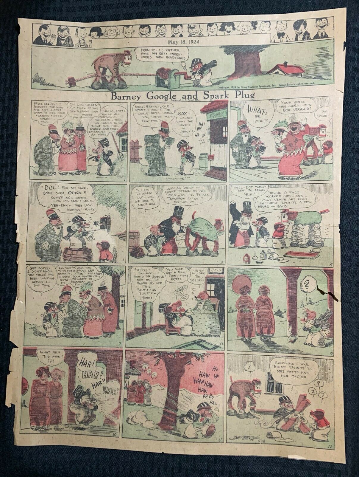 1924 May 18 BARNEY GOOGLE & SPARK PLUG 15x20" Full Sunday Comic Page GD 2.0