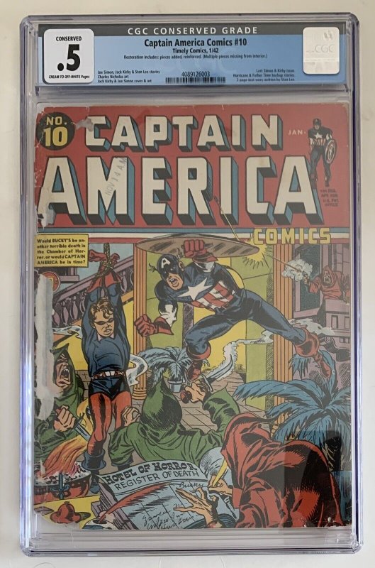 (1942) Captain America Comics #10 CGC Conserved 0.5 Golden Age Classic!