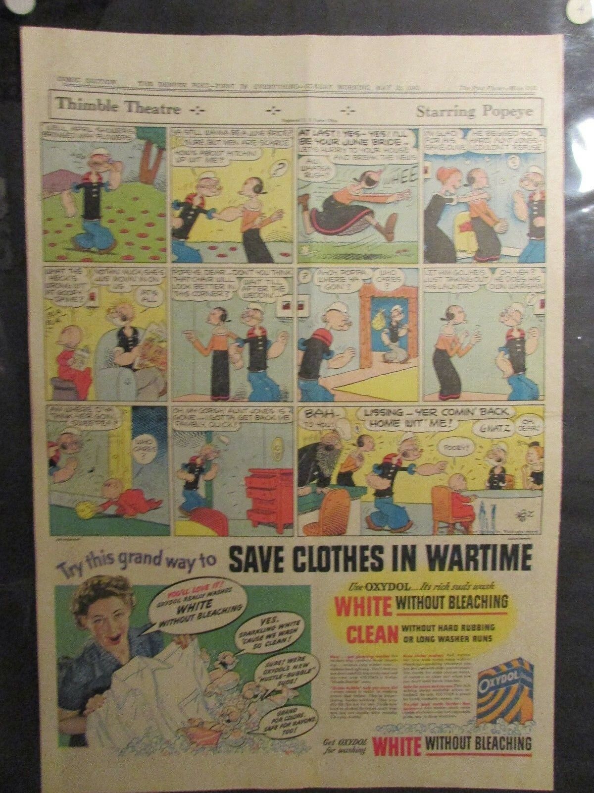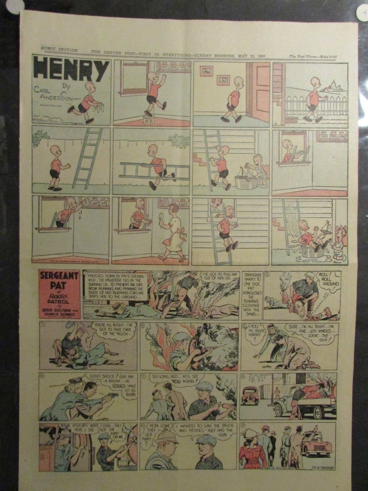 1943 May 23 SUNDAY COMIC PAGE 15x21" FN 6.0 Popeye / Henry / Sergeant Pat