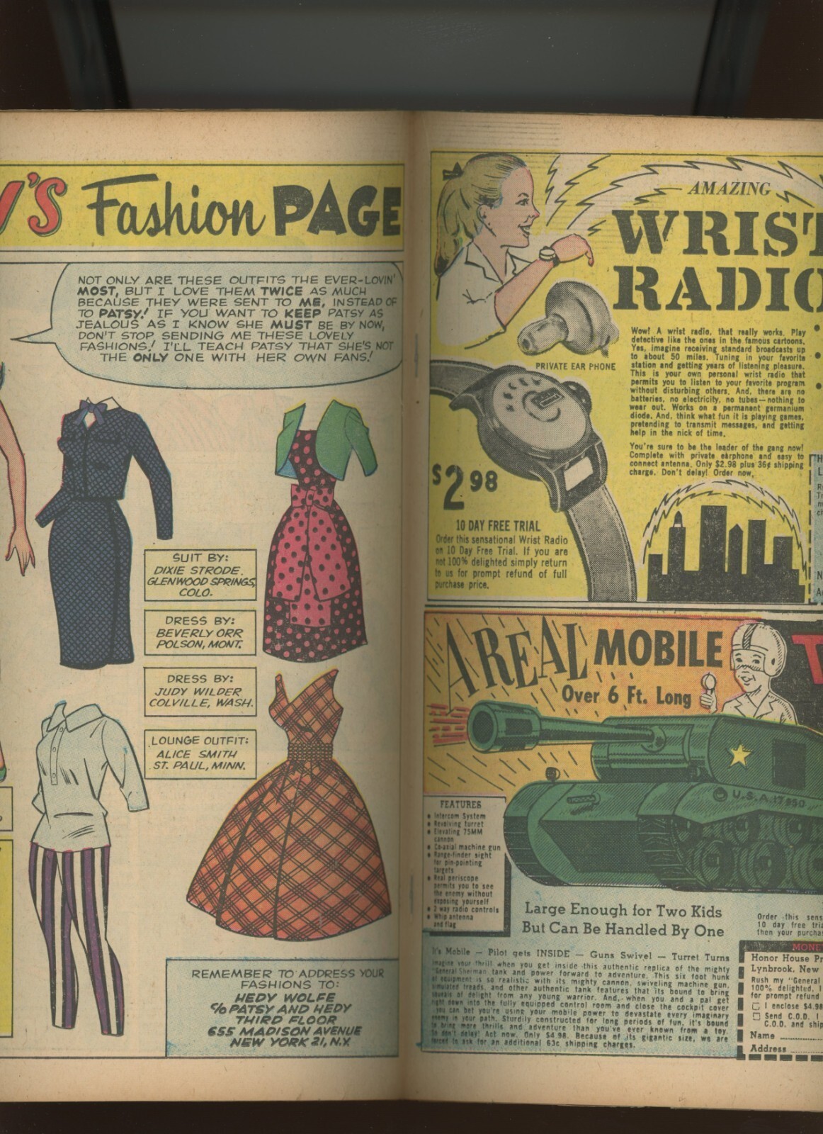 (1960) Patsy and Hedy #72: SILVER AGE MARVEL! WE COMBINE SHIPPING! (5.5/6.0)Size: 7" x 10"This item was uploaded by KB.***WE COMBINE SHIPPING!!!****Either wait for us to send you an invoice after you commit to buy or, if it makes you pay right away, message us back and we'll refund the excess charge. *Buy as many single comic books as you want for one low flat shipping rate in the United States! International orders will be charged exactly according to the size and weight. *If you have any specific questions or requests, please ask us prior to ordering and we'll get back to you as soon as we can. *If there are any problems with your order whatsoever, please message us before leaving feedback and we'll be happy to work with you to fix the situation! *We ship worldwide, combine purchases, and charge exact shipping. The price may vary based on size, weight, and location. If you are automatically overcharged for shipping, message us and we'll be happy to revise the invoice or refund you the excess amount. If you have any questions regarding shipping, please message us. International Buyers - Please Note: *Import duties, taxes, and charges are not included in the item price or shipping cost. These charges are the buyer's responsibility. *Please check with your country's customs office to determine what these additional costs will be prior to bidding or buying. *Payment can be made via PayPal and credit cards (directly). 120,000+ items in total in my Hip store! Frequently Asked Questions: *What are your hours of operation?Our in-office hours are Monday - Friday, 11 am - 8 pm EST. We are not open on weekends, so if you send us a request on Friday evening we won't get back to you until Monday afternoon. Please don't take it as us ignoring you! We will work on your request Monday and get back to you as soon as we can. Also, if you order from us on a Friday evening or Saturday morning we won't start processing your order until we open on Monday. That means on Monday it will be pulled and prepped for shipping, then picked up by the postman on Tuesday morning.*When will you ship my item? The tracking hasn't moved. We realize you're eager to get your item, so if the tracking hasn't moved in a few days please don't be concerned. We give the postman a lot of packages daily, sometimes as many as 100, so he does not scan each item for us upon pickup as he says it would be too time consuming for him to do so. If you get a tracking number from us, that almost always means your item was picked up by the postman the next business day. The USPS is also imperfect. There are times when the tracking won't even show movement until it's in your area's regional distribution center. This is normal in our experience. *Is the item pictured the exact one for sale?Yes! We don't use stock images and go through great lengths to scan or photograph everything we list. The item pictured is exactly what you should receive UNLESS it is a fixed price listing with multiple items available. *Can you issue a COA? We can, upon request. Please make sure you leave us a note while checking out and shoot us a message immediately after requesting one, just to be sure. *How do you grade?Grading is very subjective, but we are professionals with decades of grading experience between us who try the best we can to accurately describe the condition of the items we list. Anthony is an Overstreet Comic Book Price Guide Advisor Please see the grading chart below for a breakdown of how we grade: NOTE: We don't grade any raw books higher than 9.2, as once you go higher than that grading gets really subjective. If you buy a "NM-" book from us, it may very well be higher than 9.2 but we play it safe and grade conservatively. 9.2 NM- Near Mint- 9.0 VF/NM Very Fine/Near Mint 8.5 VF+ Very Fine+ 8.0 VF Very Fine 7.5 VF- Very Fine- 7.0 FN/VF Fine/Very Fine 6.5 FN+ Fine+ 6.0 FN Fine 5.5 FN- Fine- 5.0 VG/FN Very Good/Fine 4.5 VG+ Very Good+ 4.0 VG Very Good 3.5 VG- Very Good- 3.0 GD/VG Good/Very Good 2.5 GD+ Good+ 2.0 GD Good 1.8 GD- Good- 1.5 FR/GD Fair/Good 1.0 FR Fair 0.5 PR Poor*How do you ship comics? We ship in rigid cardboard mailers to protect your comic book from the worst the mail system has to offer. Price varies based on the number of books you purchase, but we try to keep costs as low as we can and charge exact shipping. If it looks unusually high to you please send us a message and we'll be happy to double check for you. *Do you combine shipping? Yes, of like items. Such as: several comics can fit in one cardboard mailer, as can more than one record. Multiple art pages can easily be combined because they are light and thin. Where combined shipping differs is with size and weight. For instance, two statues require a much bigger box. The same goes for CGCs, as the package gets bigger and heavier as you go. *Do you ship well? I've had some bad experiences... You needn't worry, as we are professionals who value your business and want your item to arrive safely as much as you do. I have been collecting for over 30 years. I send out items the way I would like to receive them. *The tracking says my item is "OUT FOR DELIVERY" in New Jersey. Why is that?If the tracking indicates that the item is "OUT FOR DELIVERY" in NJ don't worry, it's just what the tracking says when it's carried over from the postman to the sorting center. This is normal for our Post Office and will not impact you receiving your item in a timely matter.*What is the difference between a "RUN" and a "LOT"?Good question. A RUN will be a collection of consecutive issues with no breaks in between them. If it says RUN of #s 1 - 50, you will receive 50 consecutive comics. A LOT will be within a certain range, so a 50 piece LOT will not contain consecutive books.*I changed my mind after successfully winning the auction or fixed price listing, will you cancel the transaction? Please only bid or hit "BUY IT NOW" if you are willing to follow through and pay for the item, as we will not cance