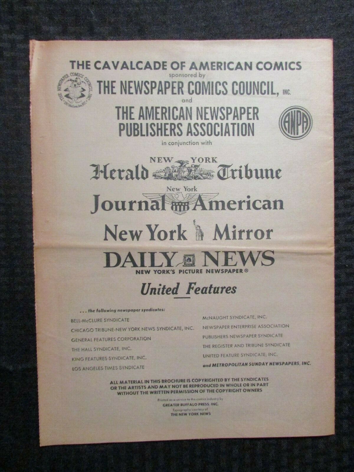 Condition: Grade & Condition: VG+ 4.5 , folded , edge wear , tanning to edges , SEE PICS!!!!1965 CAVALCADE OF AMERICAN COMICS 1st Ed. VG+ 4.5 Peanuts Mandrake 16pgsGrade & Condition: VG+ 4.5 , folded , edge wear , tanning to edges , SEE PICS!!!!This item was listed by DG.If you have any specific questions or requests, please ask us prior to ordering and we'll get back to you as soon as we can. If there are any problems with your order whatsoever, please message us before leaving feedback and we'll be happy to work with you to fix the situation! We ship worldwide, combine purchases, and charge exact shipping. The price may vary based on size, weight, and location. If you are automatically overcharged for shipping, message us and we'll be happy to revise the invoice or refund you the excess amount. If you have any questions regarding shipping, please message us.International Buyers - Please Note: Import duties, taxes, and charges are not included in the item price or shipping cost. These charges are the buyer's responsibility.Please check with your country's customs office to determine what these additional costs will be prior to bidding or buying.