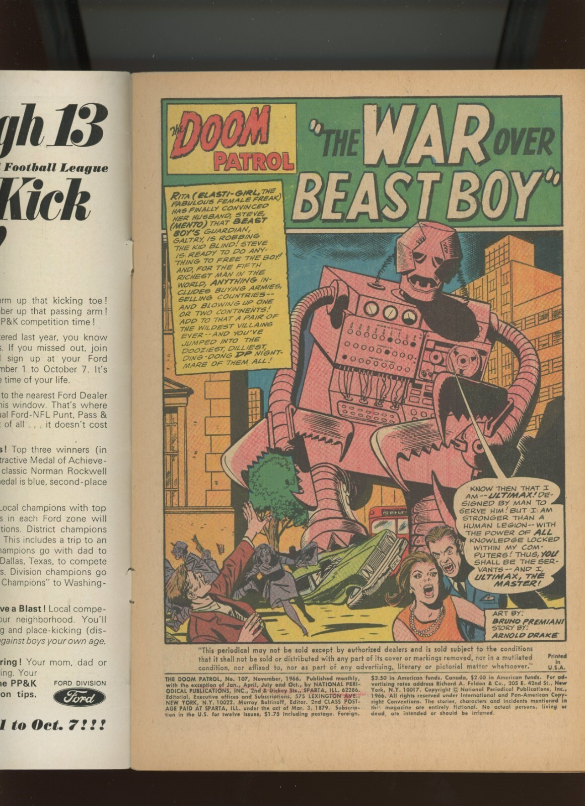 (1966) The Doom Patrol #107: SILVER AGE! WE COMBINE SHIPPING! (4.0/4.5)Size: 7" x 10"This item was uploaded by KB.***WE COMBINE SHIPPING!!!****Either wait for us to send you an invoice after you commit to buy or, if it makes you pay right away, message us back and we'll refund the excess charge. *Buy as many single comic books as you want for one low flat shipping rate in the United States! International orders will be charged exactly according to the size and weight. *If you have any specific questions or requests, please ask us prior to ordering and we'll get back to you as soon as we can. *If there are any problems with your order whatsoever, please message us before leaving feedback and we'll be happy to work with you to fix the situation! *We ship worldwide, combine purchases, and charge exact shipping. The price may vary based on size, weight, and location. If you are automatically overcharged for shipping, message us and we'll be happy to revise the invoice or refund you the excess amount. If you have any questions regarding shipping, please message us. International Buyers - Please Note: *Import duties, taxes, and charges are not included in the item price or shipping cost. These charges are the buyer's responsibility. *Please check with your country's customs office to determine what these additional costs will be prior to bidding or buying. *Payment can be made via PayPal and credit cards (directly). 120,000+ items in total in my Hip store! Frequently Asked Questions: *What are your hours of operation?Our in-office hours are Monday - Friday, 11 am - 8 pm EST. We are not open on weekends, so if you send us a request on Friday evening we won't get back to you until Monday afternoon. Please don't take it as us ignoring you! We will work on your request Monday and get back to you as soon as we can. Also, if you order from us on a Friday evening or Saturday morning we won't start processing your order until we open on Monday. That means on Monday it will be pulled and prepped for shipping, then picked up by the postman on Tuesday morning.*When will you ship my item? The tracking hasn't moved. We realize you're eager to get your item, so if the tracking hasn't moved in a few days please don't be concerned. We give the postman a lot of packages daily, sometimes as many as 100, so he does not scan each item for us upon pickup as he says it would be too time consuming for him to do so. If you get a tracking number from us, that almost always means your item was picked up by the postman the next business day. The USPS is also imperfect. There are times when the tracking won't even show movement until it's in your area's regional distribution center. This is normal in our experience. *Is the item pictured the exact one for sale?Yes! We don't use stock images and go through great lengths to scan or photograph everything we list. The item pictured is exactly what you should receive UNLESS it is a fixed price listing with multiple items available. *Can you issue a COA? We can, upon request. Please make sure you leave us a note while checking out and shoot us a message immediately after requesting one, just to be sure. *How do you grade?Grading is very subjective, but we are professionals with decades of grading experience between us who try the best we can to accurately describe the condition of the items we list. Anthony is an Overstreet Comic Book Price Guide Advisor Please see the grading chart below for a breakdown of how we grade: NOTE: We don't grade any raw books higher than 9.2, as once you go higher than that grading gets really subjective. If you buy a "NM-" book from us, it may very well be higher than 9.2 but we play it safe and grade conservatively. 9.2 NM- Near Mint- 9.0 VF/NM Very Fine/Near Mint 8.5 VF+ Very Fine+ 8.0 VF Very Fine 7.5 VF- Very Fine- 7.0 FN/VF Fine/Very Fine 6.5 FN+ Fine+ 6.0 FN Fine 5.5 FN- Fine- 5.0 VG/FN Very Good/Fine 4.5 VG+ Very Good+ 4.0 VG Very Good 3.5 VG- Very Good- 3.0 GD/VG Good/Very Good 2.5 GD+ Good+ 2.0 GD Good 1.8 GD- Good- 1.5 FR/GD Fair/Good 1.0 FR Fair 0.5 PR Poor*How do you ship comics? We ship in rigid cardboard mailers to protect your comic book from the worst the mail system has to offer. Price varies based on the number of books you purchase, but we try to keep costs as low as we can and charge exact shipping. If it looks unusually high to you please send us a message and we'll be happy to double check for you. *Do you combine shipping? Yes, of like items. Such as: several comics can fit in one cardboard mailer, as can more than one record. Multiple art pages can easily be combined because they are light and thin. Where combined shipping differs is with size and weight. For instance, two statues require a much bigger box. The same goes for CGCs, as the package gets bigger and heavier as you go. *Do you ship well? I've had some bad experiences... You needn't worry, as we are professionals who value your business and want your item to arrive safely as much as you do. I have been collecting for over 30 years. I send out items the way I would like to receive them. *The tracking says my item is "OUT FOR DELIVERY" in New Jersey. Why is that?If the tracking indicates that the item is "OUT FOR DELIVERY" in NJ don't worry, it's just what the tracking says when it's carried over from the postman to the sorting center. This is normal for our Post Office and will not impact you receiving your item in a timely matter.*What is the difference between a "RUN" and a "LOT"?Good question. A RUN will be a collection of consecutive issues with no breaks in between them. If it says RUN of #s 1 - 50, you will receive 50 consecutive comics. A LOT will be within a certain range, so a 50 piece LOT will not contain consecutive books.*I changed my mind after successfully winning the auction or fixed price listing, will you cancel the transaction? Please only bid or hit "BUY IT NOW" if you are willing to follow through and pay for the item, as we will not cancel the