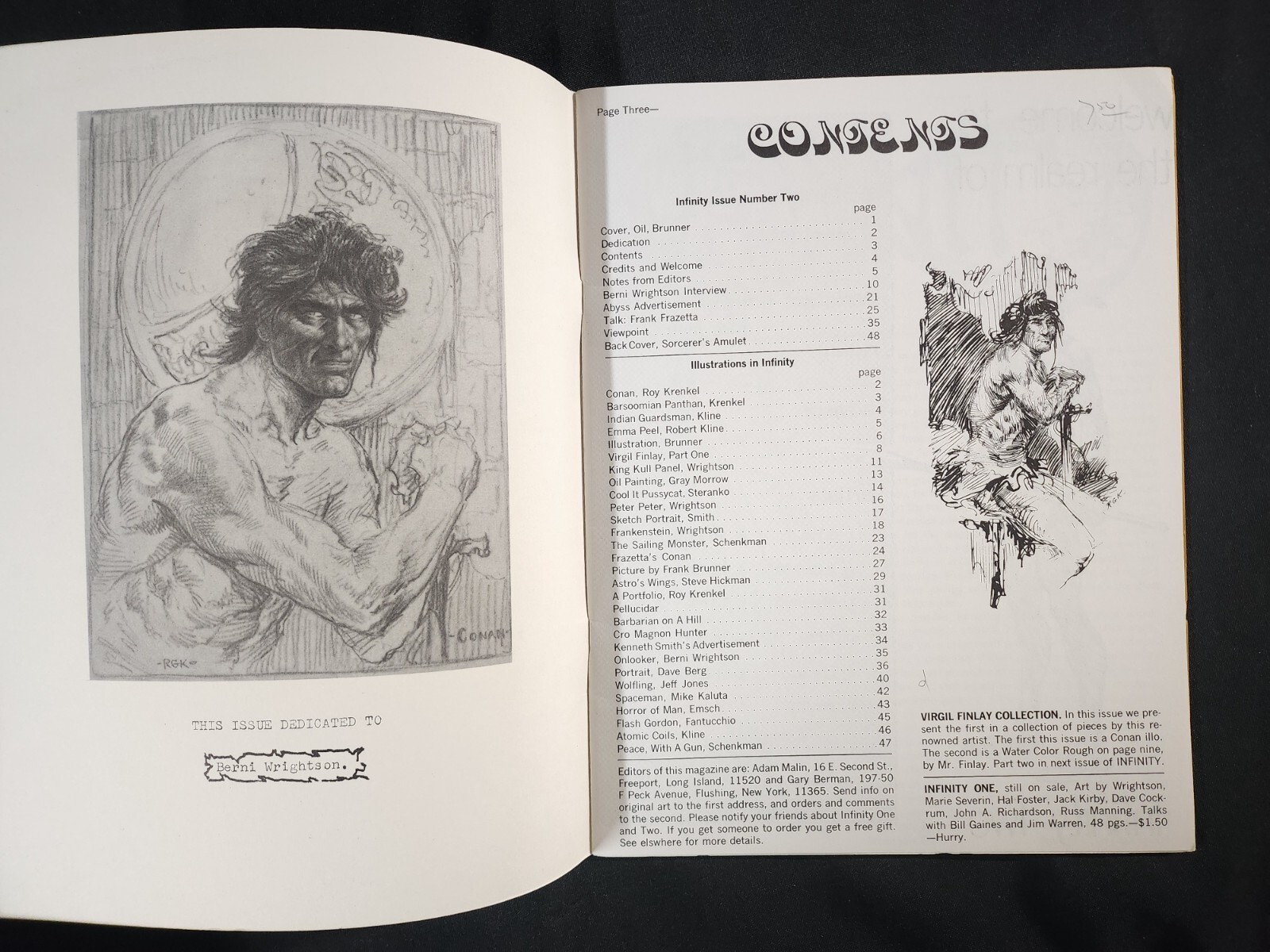 1970 INFINITY 2 Fanzine (7.0) Frank Brunner Cover, B. Wrightson, F. Frazetta