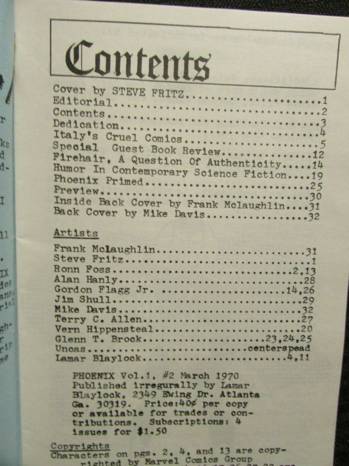 1970 PHOENIX Science Fiction Fanzine v.1 #2 FN+ 6.5 32pgs Frank McLouchlin