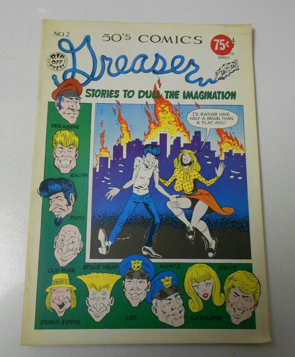 1972 GREASER Stories To Dull The Imagintion #2 VF- Rip Off Press UNDERGROUND Condition/Grade: VF- price sticker over 50 cent , SEE PICS!!!This Auction posted by DAVE, for faster service please address any questions to DAVE. Thank You, Happy Bidding!Grading is VERY subjective, i try to grade items as best i can but use the pics as a guide for yourself and if you still have any questions send an email. Happy Bidding!We use the comic book grading system (link below) for almost all of our auctions, please refer to this chart and look at the pictures to decide for yourself if the grading is to your liking and agreement (if you notice any glaring omissions please contact us, our goal is 100% customer satisfaction). will be graded accordingly to the best of our abilities so unless the item is SEALED please refer to the guide & pictures and decide for yourself. Placing a bid on this item verifies that you agree with the grading we have provided. Happy Bidding!Will ship to Worldwide and combine LIKE purchases. Contact the seller for other services.Payment can be made by PayPal and credit cards directlyPLEASE SEE MY ABOUT ME PAGE FOR 1000'S OF PICTURED ART PAGES AVAILABLESee ABOUT ME for 1000's of original art pages in stockI combine shipping on multiple buys of LIKE items!AS SEEN ON TV: I am the Regular Comic Book Expert on Kevin Smith's Comic Book MenSundays at 11:30 pm on AMC (Following the Walking Dead) I have been buying and selling artwork and comics for about 20 years. The artwork pictured are all one of kind originals unless otherwise described. If you are new to buying art feel free to ask any questions that you may have.Anthony is always interested in doing business and answering your questions feel free to call or e-mail me to let me know what you have. This # is text enabled as well.See ABOUT ME for 1000's of original art pages in stock Small, Regular, and Large Portfolios available; see my Hip store! Froo | Froo Cross Sell, Free Cross Sell, Cross promote, Hip Marketing, Hip listing Apps, Hip Apps, Hip Application