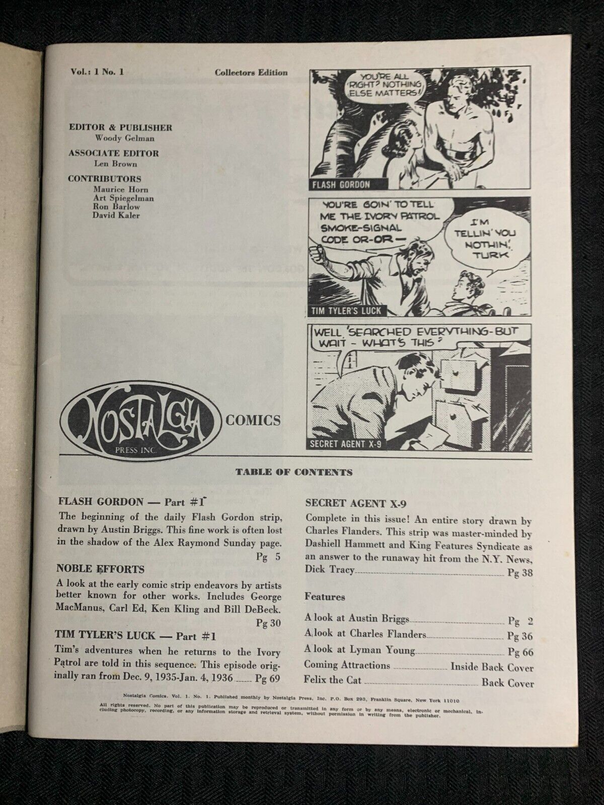 1972 NOSTALGIA COMICS #1 FN 6.0 Flash Gordon / Secret Agent X-9
