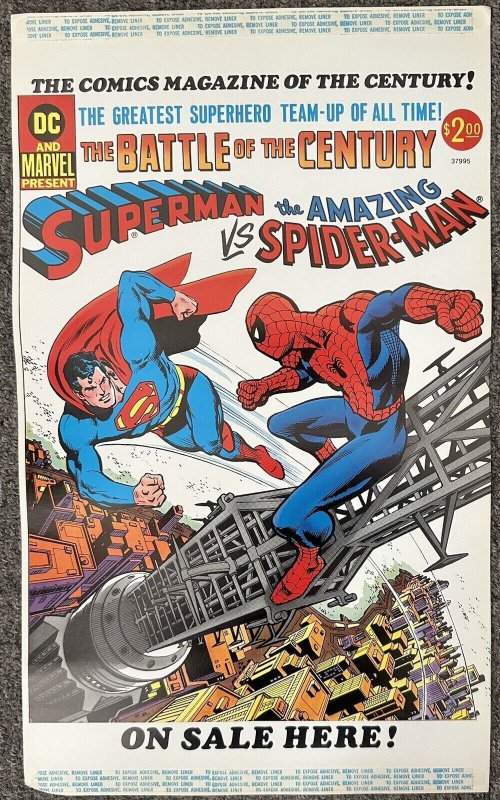(1976) DC/MARVEL SUPERMAN VS AMAZING SPIDER-MAN WINDOW CLING PROMO POSTER! RARE!