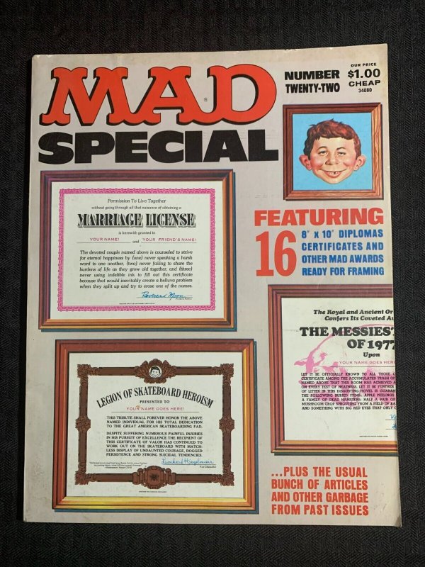 1977 MAD SPECIAL Magazine #22 FVF 7.0 with 16 Diplomas & Awards Insert