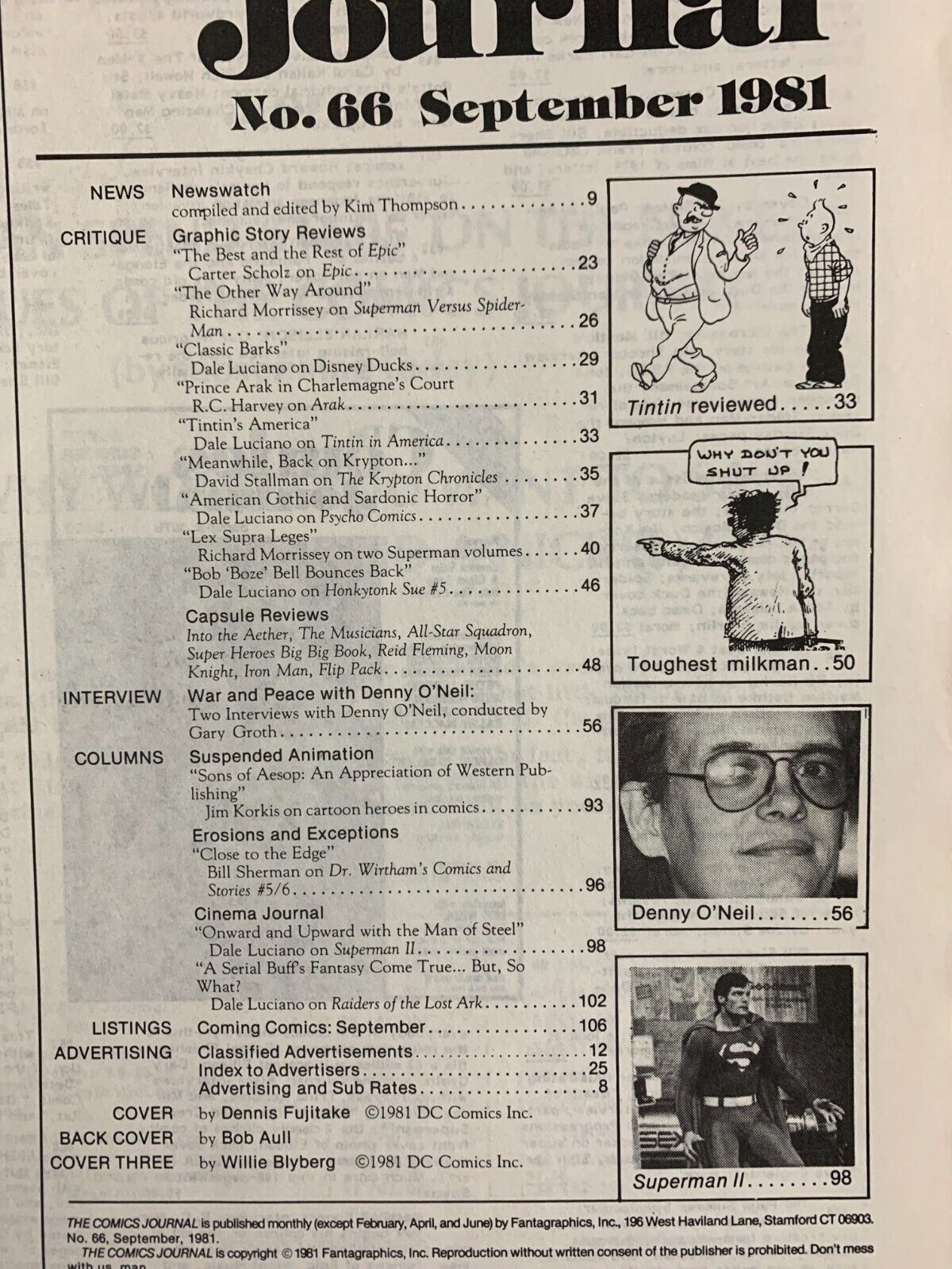 1981 COMICS JOURNAL Magazine #66 VG+ 4.5 Denny O'Neil Interview / Batman Cover