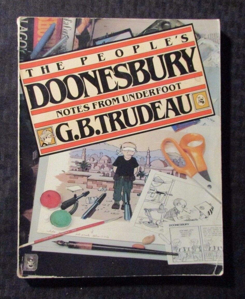1981 The People's Doonesbury Notes from Underfoot by G. B. Trudeau SC VG 4.0Condition/Grade: VG , edge damage , SEE PICS!!! Refer to grading chart below to see this items grade in a numerical scale of 1-10Item pictured is item you are bidding on. All items are complete unless otherwise noted.This Auction posted by Dave, for faster service please address any questions to Dave. Thank You, Happy Bidding!If there are any problems with your order whatsoever, please message us before leaving feedback and we'll be happy to work with you to fix the situation! We ship worldwide, combine purchases, and charge exact shipping. The price may vary based on size, weight, and location. If you are automatically overcharged for shipping, message us and we'll be happy to revise the invoice or refund you the excess amount. If you have any questions regarding shipping, please message us.International Buyers – Please Note:Import duties, taxes, and charges are not included in the item price or shipping cost. These charges are the buyer's responsibility.Please check with your country's customs office to determine what these additional costs will be prior to bidding or buying.Payment can be made by PayPal and credit cards directly.PLEASE SEE MY ABOUT ME PAGE FOR 1000'S OF PICTURED ART PAGES AVAILABLEFrequently Asked Questions:Is the item pictured the exact one for sale?Yes! We don't use stock images and go through great lengths to scan or photograph everything we list. The item pictured is exactly what you should receive UNLESS it is a fixed price listing with multiple items available. How do you grade?Grading is very subjective, but we are professionals with decades of grading experience between us who try the best we can to accurately describe the condition of the items we list.10.0 GM Gem Mint 9.9 M Mint 9.8 NM/M Near Mint/Mint 9.6 NM+ Near Mint+ 9.4 NM Near Mint 9.2 NM- Near Mint- 9.0 VF/NM Very Fine/Near Mint 8.5 VF+ Very Fine+ 8.0 VF Very Fine 7.5 VF- Very Fine- 7.0 FN/VF Fine/Very Fine 6.5 FN+ Fine+ 6.0 FN Fine 5.5 FN- Fine- 5.0 VG/FN Very Good/Fine 4.5 VG+ Very Good+ 4.0 VG Very Good 3.5 VG- Very Good- 3.0 GD/VG Good/Very Good 2.5 GD+ Good+ 2.0 GD Good 1.8 GD- Good- 1.5 FR/GD Fair/Good 1.0 FR Fair 0.5 PR PoorWhat is your base shipping for comics?Our base ship method will be in a media box for $5.00 domestic. If it says expedited $5.60 that’s a typo! Base shipping price you see is for your item to be shipped very well in the appropriate box. We spend money on these boxes to protect during shipping so you can be confident your item will arrive securely.Do you combine shipping?Yes, of like items. Such as: several comics can fit in one media box, as can more than one record. Multiple art pages can easily be combined because they are light and thin. Where combined shipping differs is with size and weight. For instance, two statues require a much bigger box. Same goes for CGCs, as the package gets bigger and heavier as you go.Do you ship well? I’ve had some bad experiences…You needn’t worry; we are professionals who value your business and want your item to arrive safely as much as you do. I have been collecting for over 30 years. I send out items the way I would like to receive them.The tracking says my item is "OUT FOR DELIVERY" in New Jersey. Why is that?If the tracking indicates that the item is "OUT FOR DELIVERY" in NJ don't worry, it's just what the tracking says when it's carried over from the postman to the sorting center. This is normal for our Post Office and will not impact you receiving your item in a timely matter.What is the difference between a RUN and a LOT?Good question. A RUN will be a collection of consecutive issues with no breaks in between them. If it says RUN of #s 1 - 50 you will receive 50 consecutive comics. A LOT will be within a certain range, so a 50pc LOT will not contain consecutive books.I changed my mind after successfully winning the auction or fixed price listing, will you cancel the transaction?Please only bid or hit BUY IT NOW if you are willing to follow through and pay for the item, we will not cancel the transaction. As a seller, Hip penalizes us every time we cancel an order, so it is detrimental to our business to do so. Therefore if you will not pay, then you'll have to let Hip cycle this to an “unpaid item” and accept whatever action Hip deems necessary.See ABOUT ME for 1000's of original art pages in stock