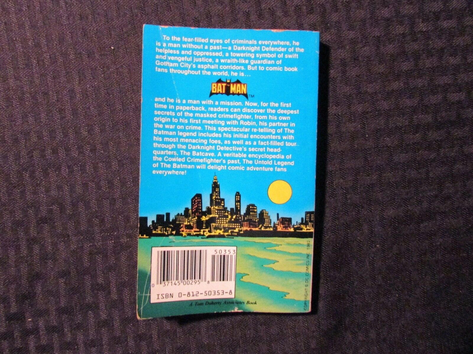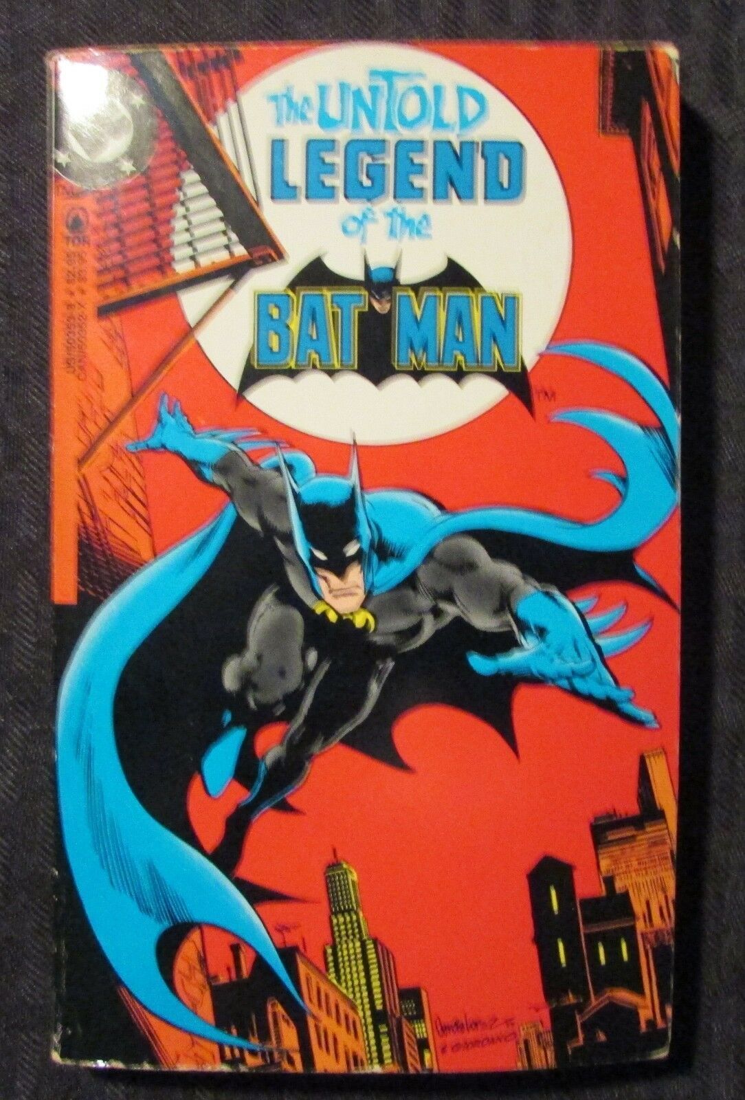 1982 The Untold Legend of BATMAN FN- 5.5 TOR PaperbackCondition & Grade: FN- , creasing , tanning to edges , SEE PICS!!!This item was uploaded by DG.If there are any problems with your order whatsoever, please message us before leaving feedback and we'll be happy to work with you to fix the situation!We ship worldwide, combine purchases, and charge exact shipping. The price may vary based on size, weight, and location. If you are automatically overcharged for shipping, message us and we'll be happy to revise the invoice or refund you the excess amount. If you have any questions regarding shipping, please message us.International Buyers – Please Note: Import duties, taxes, and charges are not included in the item price or shipping cost. These charges are the buyer's responsibility.Please check with your country's customs office to determine what these additional costs will be prior to bidding or buying.Payment can be made by PayPal and credit cards directly.65,000+ items in total in my Hip store!Frequently Asked Questions:Is the item pictured the exact one for sale?Yes! We don't use stock images and go through great lengths to photograph everything we list. The item pictured is exactly what you should receive UNLESS it is a fixed price listing with multiple items available.How do you grade?Grading is very subjective, but we are professionals with decades of grading experience between us who try the best we can to accurately describe the condition of the items we list.Anthony is an Overstreet Comic Book Price Guide AdvisorDo you combine shipping?Yes, of like items. Such as: several comics can fit in one cardboard mailer, as can more than one record. Multiple art pages can easily be combined because they are light and thin. Where combined shipping differs is with size and weight. For instance, two statues require a much bigger box. Same goes for CGCs, as the package gets bigger and heavier as you go.Do you ship well? I’ve had some bad experiences…You needn’t worry; we are professionals who value your business and want your item to arrive safely as much as you do. I have been collecting for over 30 years. I send out items the way I would like to receive them. The tracking says my item is "OUT FOR DELIVERY" in New Jersey. Why is that?If the tracking indicates that the item is "OUT FOR DELIVERY" in NJ don't worry, it's just what the tracking says when it's carried over from the postman to the sorting center. This is normal for our Post Office and will not impact you receiving your item in a timely matter.What is the difference between a RUN and a LOT?Good question. A RUN will be a collection of consecutive issues with no breaks in between them. If it says RUN of #s 1 - 50 you will receive 50 consecutive comics. A LOT will be within a certain range, so a 50pc LOT will not contain consecutive books.I changed my mind after successfully winning the auction or fixed price listing, will you cancel the transaction?Please only bid or hit BUY IT NOW if you are willing to follow through and pay for the item, we will not cancel the transaction. As a seller, Hip penalizes us every time we cancel an order, so it is detrimental to our business to do so. Therefore if you will not pay, then you'll have to let Hip cycle this to an “unpaid item” and accept whatever action Hip deems necessary.65,000+ items in total in my Hip store!MEET OUR STAFF:"At Anthony's Comic Book Art we're caffeinated to give you excellent customer service!"Pictured left to right: Nicole, Connelly, Bobby, Anthony, Shannon, Amanda, and ChrisAS SEEN ON TV Anthony is always interested in doing business and answering your questions. If you are new to collecting or have something to sell, feel free to ask any questions that you may have.65,000+ items in total in my Hip store!Small, Regular, and Large Portfolios available; see my Hip store!