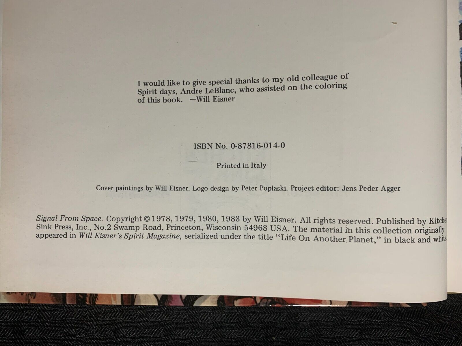 1983 SIGNAL FROM SPACE by Will Eisner HC FN+ 6.5 Kitchen Sink