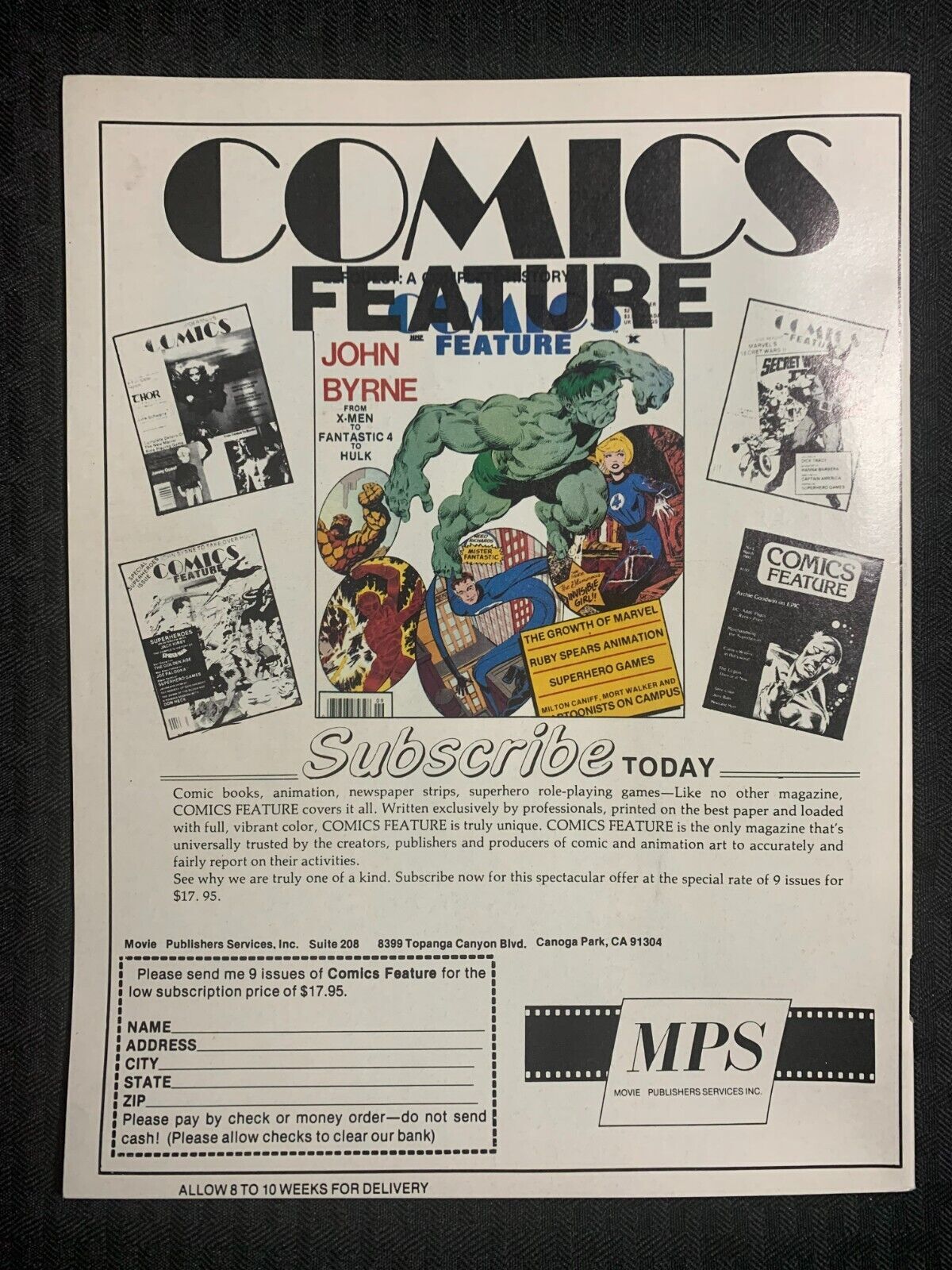 Condition: Condition/Grade: FVF 7.0 , tanning to edges , SEE PICS!!!1985 COMICS FEATURE Magazine #38 FVF 7.0 X-Factor Preview / Hulk HistoryThis item was listed by DG.If you have any specific questions or requests, please ask us prior to ordering and we'll get back to you as soon as we can. If there are any problems with your order whatsoever, please message us before leaving feedback and we'll be happy to work with you to fix the situation! We ship worldwide, combine purchases, and charge exact shipping. The price may vary based on size, weight, and location. If you are automatically overcharged for shipping, message us and we'll be happy to revise the invoice or refund you the excess amount. If you have any questions regarding shipping, please message us.International Buyers - Please Note: Import duties, taxes, and charges are not included in the item price or shipping cost. These charges are the buyer's responsibility.Please check with your country's customs office to determine what these additional costs will be prior to bidding or buying.YES, WE COMBINE SHIPPING. YES, WE COMBINE SHIPPING. YES, WE COMBINE SHIPPING. I have been buying and selling artwork and comics for about 20 years.If you are new to buying art or comics feel free to ask any questions that you may have.300,000+ items in total in my Hip store!Small, Regular, and Large Portfolios available; see my Hip store!