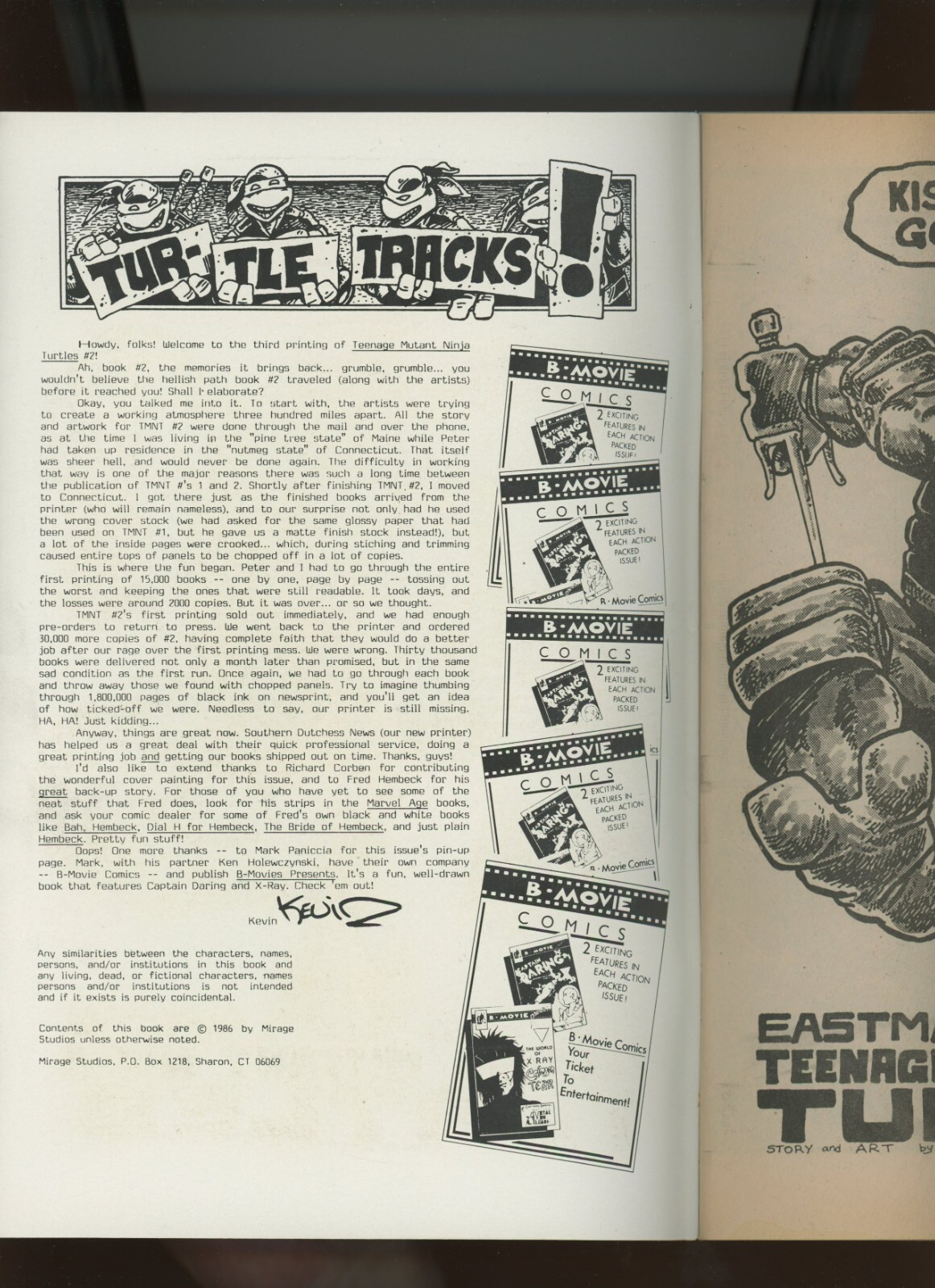 (1986) Teenage Mutant Ninja Turtles #2: KEY! 3RD PRINTING! WRAPAROUND! (9.0/9.2)Size: 7" x 10"This item was uploaded by KB.***WE COMBINE SHIPPING!!!****Either wait for us to send you an invoice after you commit to buy or, if it makes you pay right away, message us back and we'll refund the excess charge. *Buy as many single comic books as you want for one low flat shipping rate in the United States! International orders will be charged exactly according to the size and weight. *If you have any specific questions or requests, please ask us prior to ordering and we'll get back to you as soon as we can. *If there are any problems with your order whatsoever, please message us before leaving feedback and we'll be happy to work with you to fix the situation! *We ship worldwide, combine purchases, and charge exact shipping. The price may vary based on size, weight, and location. If you are automatically overcharged for shipping, message us and we'll be happy to revise the invoice or refund you the excess amount. If you have any questions regarding shipping, please message us. International Buyers - Please Note: *Import duties, taxes, and charges are not included in the item price or shipping cost. These charges are the buyer's responsibility. *Please check with your country's customs office to determine what these additional costs will be prior to bidding or buying. *Payment can be made via PayPal and credit cards (directly). 120,000+ items in total in my Hip store! Frequently Asked Questions: *What are your hours of operation?Our in-office hours are Monday - Friday, 11 am - 8 pm EST. We are not open on weekends, so if you send us a request on Friday evening we won't get back to you until Monday afternoon. Please don't take it as us ignoring you! We will work on your request Monday and get back to you as soon as we can. Also, if you order from us on a Friday evening or Saturday morning we won't start processing your order until we open on Monday. That means on Monday it will be pulled and prepped for shipping, then picked up by the postman on Tuesday morning.*When will you ship my item? The tracking hasn't moved. We realize you're eager to get your item, so if the tracking hasn't moved in a few days please don't be concerned. We give the postman a lot of packages daily, sometimes as many as 100, so he does not scan each item for us upon pickup as he says it would be too time consuming for him to do so. If you get a tracking number from us, that almost always means your item was picked up by the postman the next business day. The USPS is also imperfect. There are times when the tracking won't even show movement until it's in your area's regional distribution center. This is normal in our experience. *Is the item pictured the exact one for sale?Yes! We don't use stock images and go through great lengths to scan or photograph everything we list. The item pictured is exactly what you should receive UNLESS it is a fixed price listing with multiple items available. *Can you issue a COA? We can, upon request. Please make sure you leave us a note while checking out and shoot us a message immediately after requesting one, just to be sure. *How do you grade?Grading is very subjective, but we are professionals with decades of grading experience between us who try the best we can to accurately describe the condition of the items we list. Anthony is an Overstreet Comic Book Price Guide Advisor Please see the grading chart below for a breakdown of how we grade: NOTE: We don't grade any raw books higher than 9.2, as once you go higher than that grading gets really subjective. If you buy a "NM-" book from us, it may very well be higher than 9.2 but we play it safe and grade conservatively. 9.2 NM- Near Mint- 9.0 VF/NM Very Fine/Near Mint 8.5 VF+ Very Fine+ 8.0 VF Very Fine 7.5 VF- Very Fine- 7.0 FN/VF Fine/Very Fine 6.5 FN+ Fine+ 6.0 FN Fine 5.5 FN- Fine- 5.0 VG/FN Very Good/Fine 4.5 VG+ Very Good+ 4.0 VG Very Good 3.5 VG- Very Good- 3.0 GD/VG Good/Very Good 2.5 GD+ Good+ 2.0 GD Good 1.8 GD- Good- 1.5 FR/GD Fair/Good 1.0 FR Fair 0.5 PR Poor*How do you ship comics? We ship in rigid cardboard mailers to protect your comic book from the worst the mail system has to offer. Price varies based on the number of books you purchase, but we try to keep costs as low as we can and charge exact shipping. If it looks unusually high to you please send us a message and we'll be happy to double check for you. *Do you combine shipping? Yes, of like items. Such as: several comics can fit in one cardboard mailer, as can more than one record. Multiple art pages can easily be combined because they are light and thin. Where combined shipping differs is with size and weight. For instance, two statues require a much bigger box. The same goes for CGCs, as the package gets bigger and heavier as you go. *Do you ship well? I've had some bad experiences... You needn't worry, as we are professionals who value your business and want your item to arrive safely as much as you do. I have been collecting for over 30 years. I send out items the way I would like to receive them. *The tracking says my item is "OUT FOR DELIVERY" in New Jersey. Why is that?If the tracking indicates that the item is "OUT FOR DELIVERY" in NJ don't worry, it's just what the tracking says when it's carried over from the postman to the sorting center. This is normal for our Post Office and will not impact you receiving your item in a timely matter.*What is the difference between a "RUN" and a "LOT"?Good question. A RUN will be a collection of consecutive issues with no breaks in between them. If it says RUN of #s 1 - 50, you will receive 50 consecutive comics. A LOT will be within a certain range, so a 50 piece LOT will not contain consecutive books.*I changed my mind after successfully winning the auction or fixed price listing, will you cancel the transaction? Please only bid or hit "BUY IT NOW" if you are willing to follow through and pay for the item, as we will not c