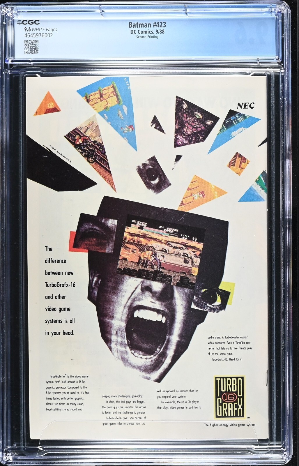 Grade: 9.6 Near Mint+This is a copy of BATMAN #423 2nd Print. It comes Cgc graded 9.6 with White pages! Shipping is $18.00 (international must pay extra)