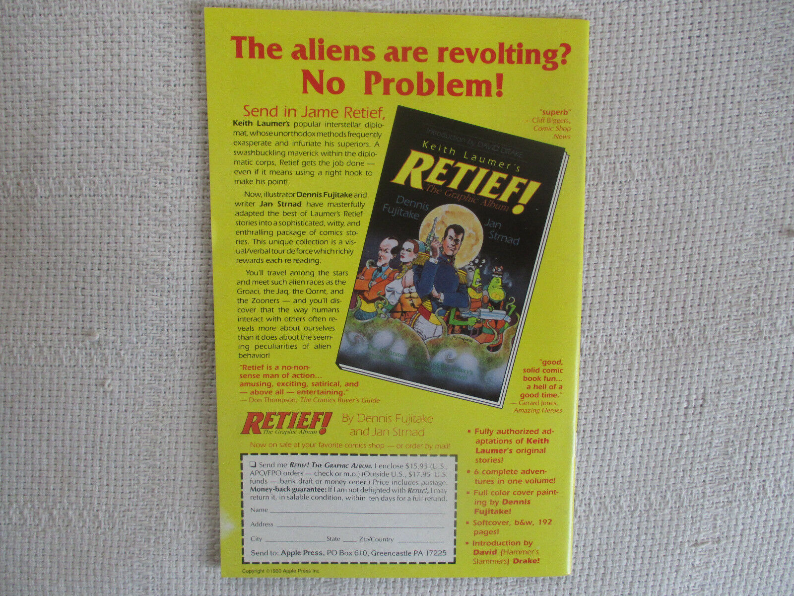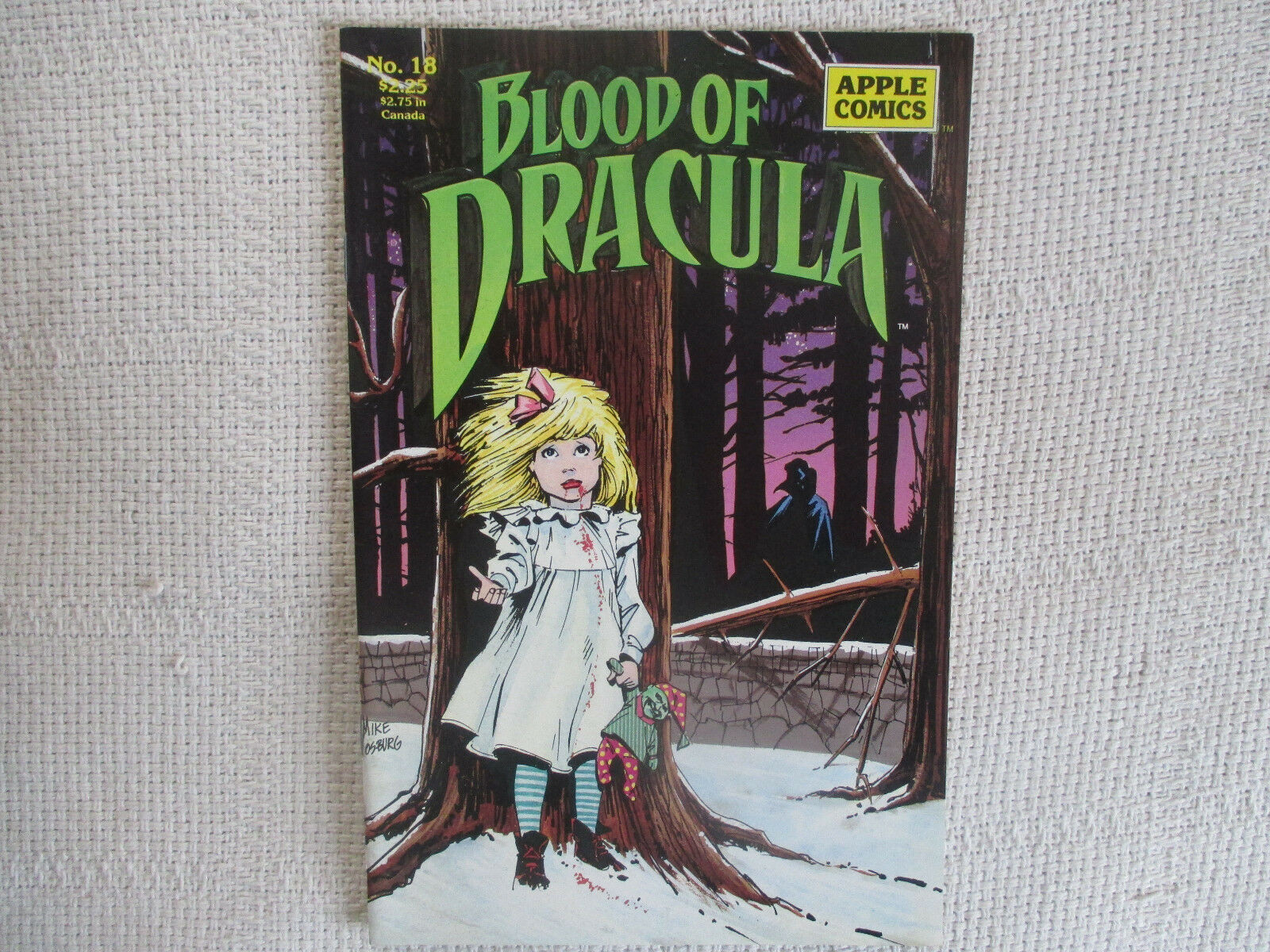 1990 Blood Of Dracula #18 September Apple Comics 7.5 VF-Condition/Grade: VF-, yellowing, SEE PICS!!!This Auction posted by TODD, for faster service please address any questions to TODD. Thank You, Happy Bidding!Frequently Asked Questions:What is your base shipping for raw comics?Our base ship method will be in a media box, media mail for $5 domestic. If it says expedited $5.60 that’s a typo! Base shipping price you see is for your item to be shipped very well in the appropriate box. We spend money on these boxes to protect during shipping so you can be confident your item will arrive securely.What is your base shipping for CGC comics?Domestic for CGCs are $10 for the first and $5 for each additional one you add.Do you combine shipping?Yes, of like items. Such as: several comics can fit in one media box, as can more than one record. Multiple art pages can easily be combined because they are light and thin. Where combined shipping differs is with size and weight. For instance, two statues require a much bigger box. Same goes for CGCs, as the package gets bigger and heavier as you go.Do you ship well? I’ve had some bad experiences…You needn’t worry; we are professionals who value your business and want your item to arrive safely as much as you do. I have been collecting for over 30 years. I send out items the way I would like to receive them.What does WH mean?We operate out of two locations, so WH stands for Warehouse, an internal code for us to know which location the item is in.Have these CGCs had any previous owners?No. I have personally sent in almost all of these to CGC and had them returned to me, offering them fresh to the market for the 1st time.I see the word STAT when describing the art page I’m interested in. What’s a STAT?A STAT is essentially a photocopy glued on to one or more of the panels by the artist done during production of the piece and is not original artwork. We will do our best to clearly identify what’s a STAT or what isn't on your page, if indeed it contains one.I changed my mind after successfully winning the auction or fixed price listing, will you cancel the transaction?Please only bid or hit BUY IT NOW if you are willing to follow through and pay for the item, we will not cancel the transaction. As a seller, Hip penalizes us every time we cancel an order, so it is detrimental to our business to do so. Therefore if you will not pay, then you'll have to let Hip cycle this to an “unpaid item” and accept whatever action Hip deems necessary.How do you grade? 10.0 GM Gem Mint 9.9 M Mint 9.8 NM/M Near Mint/Mint 9.6 NM+ Near Mint+ 9.4 NM Near Mint 9.2 NM- Near Mint- 9.0 VF/NM Very Fine/Near Mint 8.5 VF+ Very Fine+ 8.0 VF Very Fine 7.5 VF- Very Fine- 7.0 FN/VF Fine/Very Fine 6.5 FN+ Fine+ 6.0 FN Fine 5.5 FN- Fine- 5.0 VG/FN Very Good/Fine 4.5 VG+ Very Good+ 4.0 VG Very Good 3.5 VG- Very Good- 3.0 GD/VG Good/Very Good 2.5 GD+ Good+ 2.0 GD Good 1.8 GD- Good- 1.5 FR/GD Fair/Good 1.0 FR Fair 0.5 PR PoorGrading is VERY subjective, i try to grade items as best i can but use the pics as a guide for yourself and if you still have any questions send an email. Happy Bidding!We use the comic book grading system (link below) for almost all of our auctions, please refer to this chart and look at the pictures to decide for yourself if the grading is to your liking and agreement (if you notice any glaring omissions please contact us, our goal is 100% customer satisfaction). Grading is M / NM / EX / VG+ / VG / GD+ / GDM - MintNM - Near MintEX - ExcellentVG+ - Very Good+VG - Very GoodGD+ - Good+GD - GoodItems will be graded accordingly to the best of our abilities so unless the item is SEALED please refer to the guide & pictures and decide for yourself. Placing a bid on this item verifies that you agree with the grading we have provided. Happy Bidding!See ABOUT ME for 1000's of original art pages in stockI combine shipping on multiple buys!AS SEEN ON TV: I am the Regular Comic Book Expert on Kevin Smith's Comic Book MenSundays at 11:30 pm on AMC (Following the Walking Dead) I have been buying and selling artwork and comics for about 20 years. The artwork pictured are all one of kind originals unless otherwise described. If you are new to buying art feel free to ask any questions that you may have.See ABOUT ME for 1000's of original art pages in stock Small, Regular, and Large Portfolios available; see my Hip store!On Mar-29-14 at 12:59:27 PDT, seller added the following information: Froo | Froo Cross Sell, Free Cross Sell, Cross promote, Hip Marketing, Hip listing Apps, Hip Apps, Hip Application