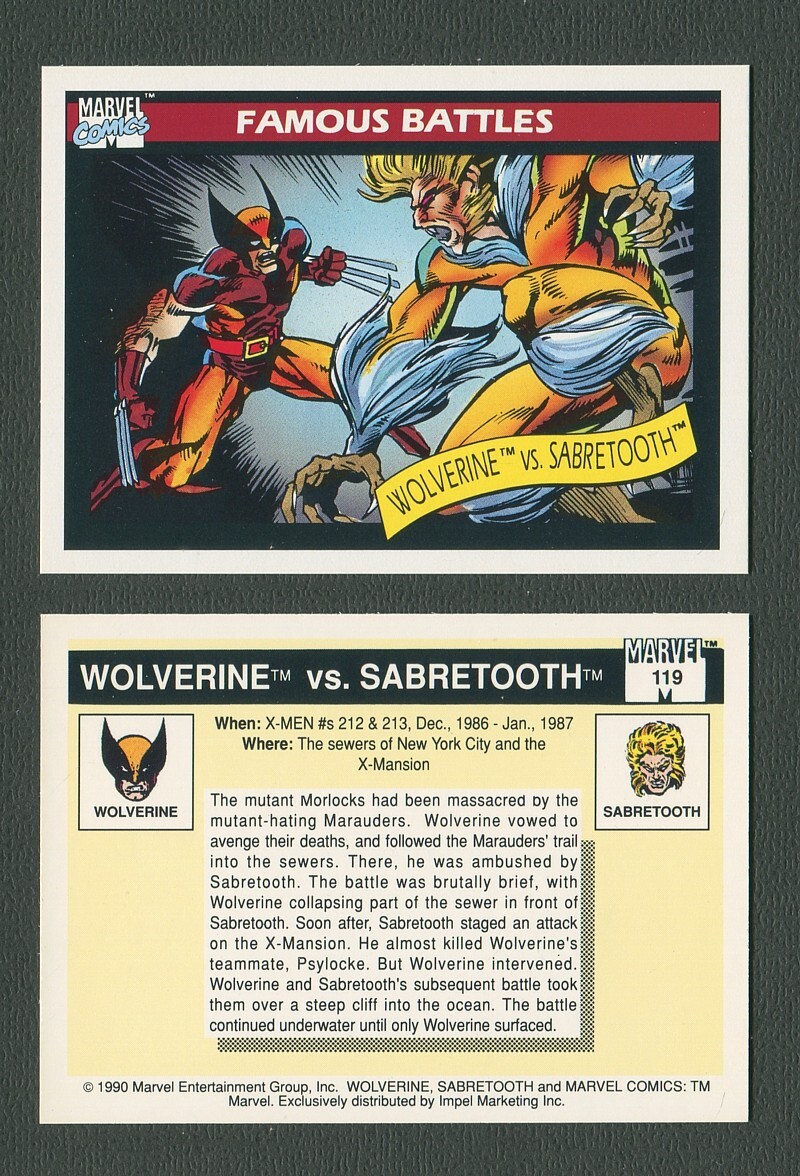 Offered here is a Mint card #119 Famous Battles Wolverine / Sabretooth