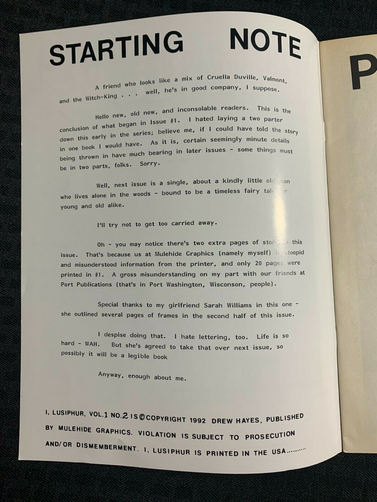 1992 I LUSIPHUR #2 FN 6.0 Drew Hayes / Mulehide Graphics