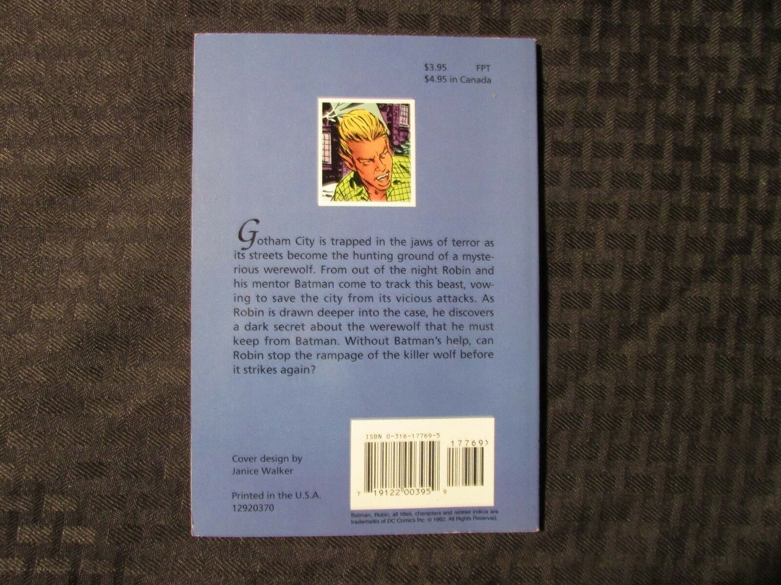 1992 ROBIN I Werewolf Angelo Torres SC VF+ Little Brown 1st PrintingCondition/Grade: VF+ tanning to edges , SEE PICS!!!This Auction posted by DAVE, for faster service please address any questions to DAVE. Thank You, Happy Bidding!Frequently Asked Questions: What is your base shipping for raw comics?Our base ship method will be in a media box, media mail for $5 domestic. If it says expedited $5.60 that’s a typo! Base shipping price you see is for your item to be shipped very well in the appropriate box. We spend money on these boxes to protect during shipping so you can be confident your item will arrive securely. What is your base shipping for CGC comics?Domestic for CGCs are $10 for the first and $5 for each additional one you add.Do you combine shipping? Yes, of like items. Such as: several comics can fit in one media box, as can more than one record. Multiple art pages can easily be combined because they are light and thin. Where combined shipping differs is with size and weight. For instance, two statues require a much bigger box. Same goes for CGCs, as the package gets bigger and heavier as you go.Do you ship well? I’ve had some bad experiences… You needn’t worry; we are professionals who value your business and want your item to arrive safely as much as you do. I have been collecting for over 30 years. I send out items the way I would like to receive them. What does WH mean? We operate out of two locations, so WH stands for Warehouse, an internal code for us to know which location the item is in.Have these CGCs had any previous owners? No. I have personally sent in almost all of these to CGC and had them returned to me, offering them fresh to the market for the 1st time. I see the word STAT when describing the art page I’m interested in. What’s a STAT? A STAT is essentially a photocopy glued on to one or more of the panels by the artist done during production of the piece and is not original artwork. We will do our best to clearly identify what’s a STAT or what isn't on your page, if indeed it contains one.I changed my mind after successfully winning the auction or fixed price listing, will you cancel the transaction? Please only bid or hit BUY IT NOW if you are willing to follow through and pay for the item, we will not cancel the transaction. As a seller, Hip penalizes us every time we cancel an order, so it is detrimental to our business to do so. Therefore if you will not pay, then you'll have to let Hip cycle this to an “unpaid item” and accept whatever action Hip deems necessary. How do you grade? 10.0 GM Gem Mint 9.9 M Mint 9.8 NM/M Near Mint/Mint 9.6 NM+ Near Mint+ 9.4 NM Near Mint 9.2 NM- Near Mint- 9.0 VF/NM Very Fine/Near Mint 8.5 VF+ Very Fine+ 8.0 VF Very Fine 7.5 VF- Very Fine- 7.0 FN/VF Fine/Very Fine 6.5 FN+ Fine+ 6.0 FN Fine 5.5 FN- Fine- 5.0 VG/FN Very Good/Fine 4.5 VG+ Very Good+ 4.0 VG Very Good 3.5 VG- Very Good- 3.0 GD/VG Good/Very Good 2.5 GD+ Good+ 2.0 GD Good 1.8 GD- Good- 1.5 FR/GD Fair/Good 1.0 FR Fair 0.5 PR Poor Grading is VERY subjective, i try to grade items as best i can but use the pics as a guide for yourself and if you still have any questions send an email. Happy Bidding!We use the comic book grading system (link below) for almost all of our auctions, please refer to this chart and look at the pictures to decide for yourself if the grading is to your liking and agreement (if you notice any glaring omissions please contact us, our goal is 100% customer satisfaction). will be graded accordingly to the best of our abilities so unless the item is SEALED please refer to the guide & pictures and decide for yourself. Placing a bid on this item verifies that you agree with the grading we have provided. Happy Bidding!See ABOUT ME for 1000's of original art pages in stockI combine shipping on multiple buys! I combine shipping on multiple buys! See FAQAS SEEN ON TV: I am the Regular Comic Book Expert on Kevin Smith's Comic Book MenSundays at 11:30 pm on AMC (Following the Walking Dead) I have been buying and selling artwork and comics for about 20 years. The artwork pictured are all one of kind originals unless otherwise described. If you are new to buying art feel free to ask any questions that you may have.See ABOUT ME for 1000's of original art pages in stock Small, Regular, and Large Portfolios available; see my Hip store! Froo | Froo Cross Sell, Free Cross Sell, Cross promote, Hip Marketing, Hip listing Apps, Hip Apps, Hip Application