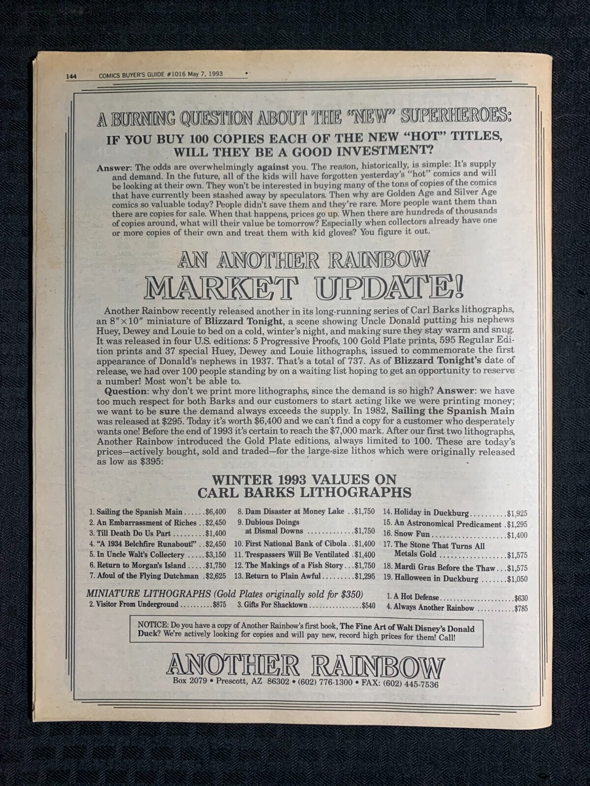 1993 COMICS BUYERS GUIDE Newspaper #1016 FN+ 6.5 Defiant Comics / Superman TVThis item was listed by DG. If you have any specific questions or requests, please ask us prior to ordering and we'll get back to you as soon as we can. If there are any problems with your order whatsoever, please message us before leaving feedback and we'll be happy to work with you to fix the situation! We ship worldwide, combine purchases, and charge exact shipping. The price may vary based on size, weight, and location. If you are automatically overcharged for shipping, message us and we'll be happy to revise the invoice or refund you the excess amount. If you have any questions regarding shipping, please message us.International Buyers - Please Note: Import duties, taxes, and charges are not included in the item price or shipping cost. These charges are the buyer's responsibility. Please check with your country's customs office to determine what these additional costs will be prior to bidding or buying.YES, WE COMBINE SHIPPING. YES, WE COMBINE SHIPPING. YES, WE COMBINE SHIPPING. I have been buying and selling artwork and comics for about 20 years. If you are new to buying art or comics feel free to ask any questions that you may have.100,000+ items in total in my Hip store!Small, Regular, and Large Portfolios available; see my Hip store!
