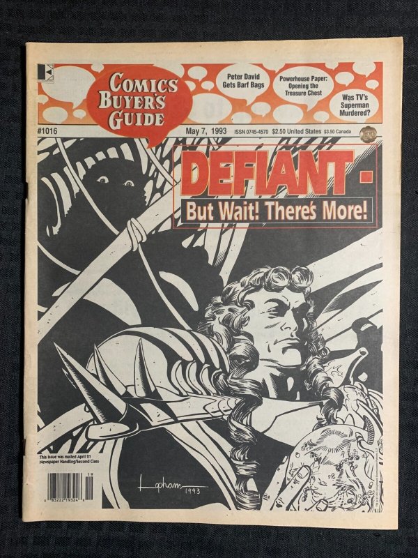 1993 COMICS BUYERS GUIDE Newspaper #1016 FN+ 6.5 Defiant Comics / Superman TV