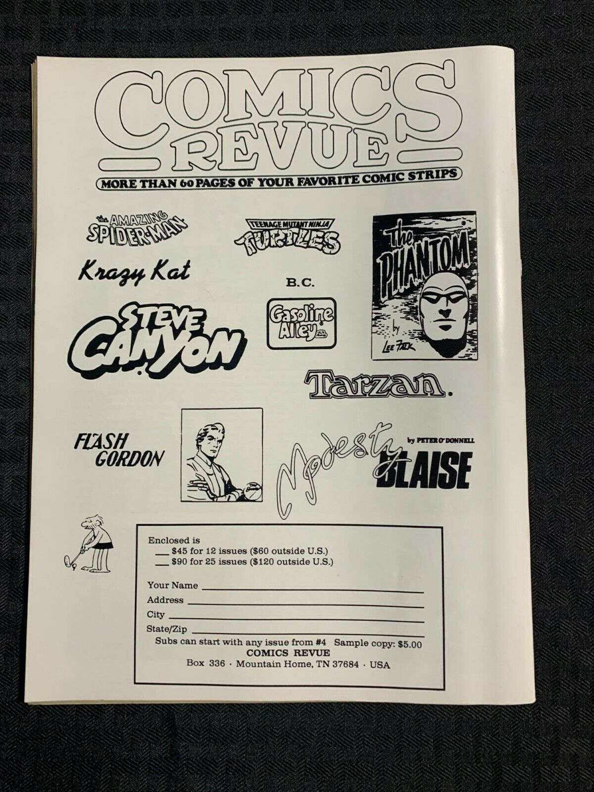 Condition: Condition/Grade: FN+ 6.5 , SEE PICS!!!1993 COMICS REVUE Magazine #83 FN+ 6.5 Spider-Man / Tarzan / Krazy Kat / PhantomCondition/Grade: FN+ 6.5 , SEE PICS!!!This item was listed by DG.If you have any specific questions or requests, please ask us prior to ordering and we'll get back to you as soon as we can. If there are any problems with your order whatsoever, please message us before leaving feedback and we'll be happy to work with you to fix the situation! We ship worldwide, combine purchases, and charge exact shipping. The price may vary based on size, weight, and location. If you are automatically overcharged for shipping, message us and we'll be happy to revise the invoice or refund you the excess amount. If you have any questions regarding shipping, please message us.International Buyers - Please Note: Import duties, taxes, and charges are not included in the item price or shipping cost. These charges are the buyer's responsibility.Please check with your country's customs office to determine what these additional costs will be prior to bidding or buying.YES, WE COMBINE SHIPPING. YES, WE COMBINE SHIPPING. YES, WE COMBINE SHIPPING. I have been buying and selling artwork and comics for about 20 years. If you are new to buying art or comics feel free to ask any questions that you may have.200,000+ items in total in my Hip store!Small, Regular, and Large Portfolios available; see my Hip store!
