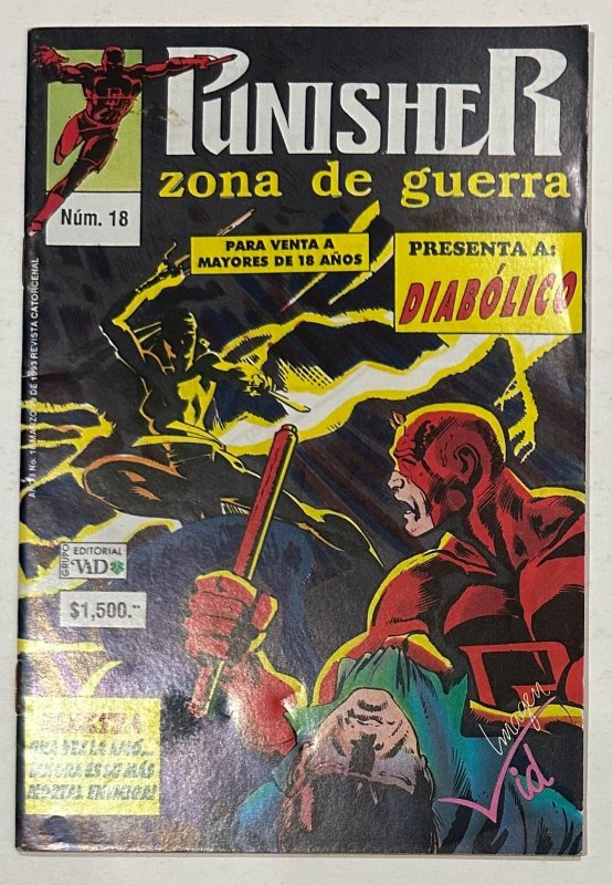 Grade: 5.5 Fine-This is a copy of PUNISHER WAS ZONE #18 Mexican Digest edition! This reprints DAREDEVIL #168 (1st ELEKTRA). Comic comes bagged and boarded and in FN- condition! A very rare edition!Shipping is FREE WITHIN THE USA (international MUST pay extra)