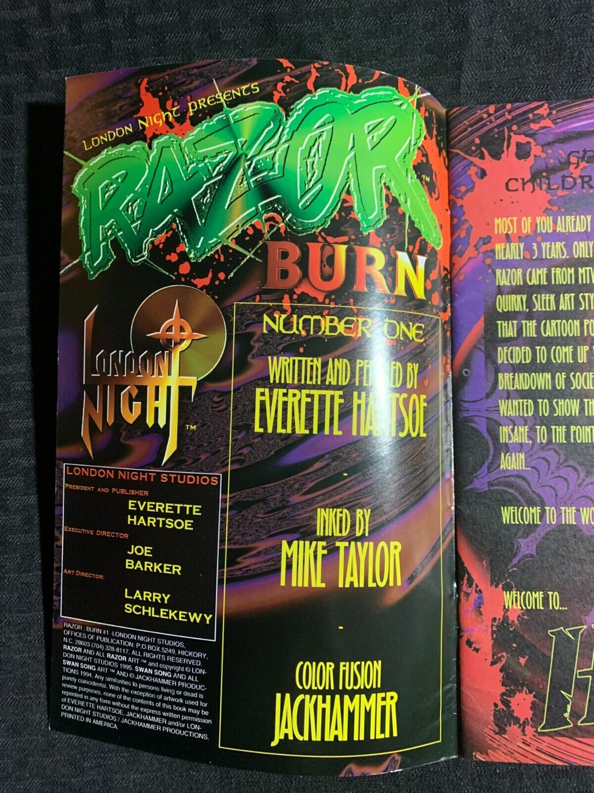 1995 RAZOR #1 Burn by Everette Hartsoe FVF 7.0 London Night Studios