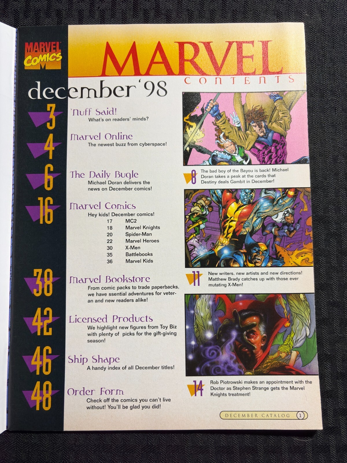 1998 Dec MARVEL COMICS CATALOG Magazine FVF 7.0 Gambit Poster / Doctor Strange