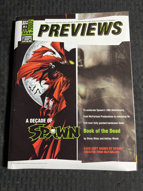 2002 March PREVIEWS Comics Catalog Magazine FVF 7.0 Decade of Spawn / Fables