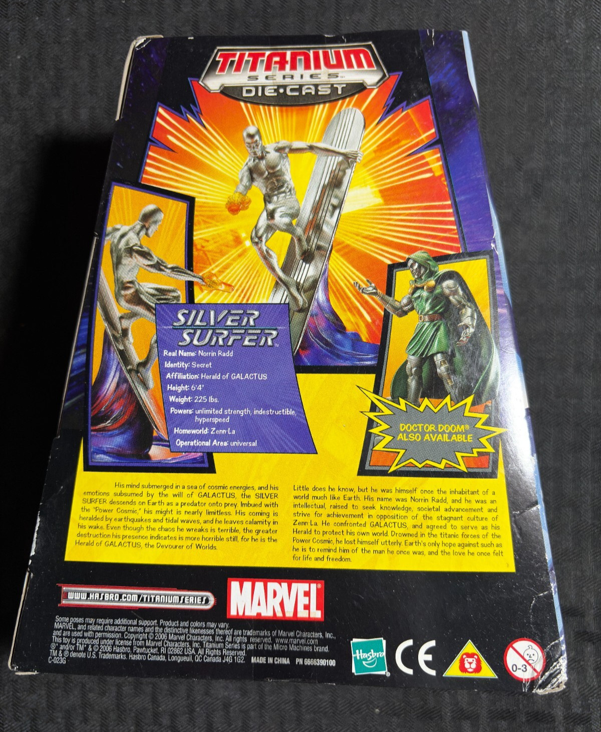 Condition: Condition/Grade: MIB , box C-7.0 , SEE PICS2006 SILVER SURFER Titanium Series Die-Cast Action Figure MIB Marvel Legends This item was listed by DG. If you have any specific questions or requests, please ask us prior to ordering and we'll get back to you as soon as we can. If there are any problems with your order whatsoever, please message us before leaving feedback and we'll be happy to work with you to fix the situation! We ship worldwide, combine purchases, and charge exact shipping. The price may vary based on size, weight, and location. If you are automatically overcharged for shipping, message us and we'll be happy to revise the invoice or refund you the excess amount. If you have any questions regarding shipping, please message us.International Buyers - Please Note: Import duties, taxes, and charges are not included in the item price or shipping cost. These charges are the buyer's responsibility. Please check with your country's customs office to determine what these additional costs will be prior to bidding or buying.YES, WE COMBINE SHIPPING. YES, WE COMBINE SHIPPING. YES, WE COMBINE SHIPPING. I have been buying and selling artwork and comics for about 20 years. If you are new to buying art or comics feel free to ask any questions that you may have.100,000+ items in total in my Hip store!Small, Regular, and Large Portfolios available; see my Hip store!