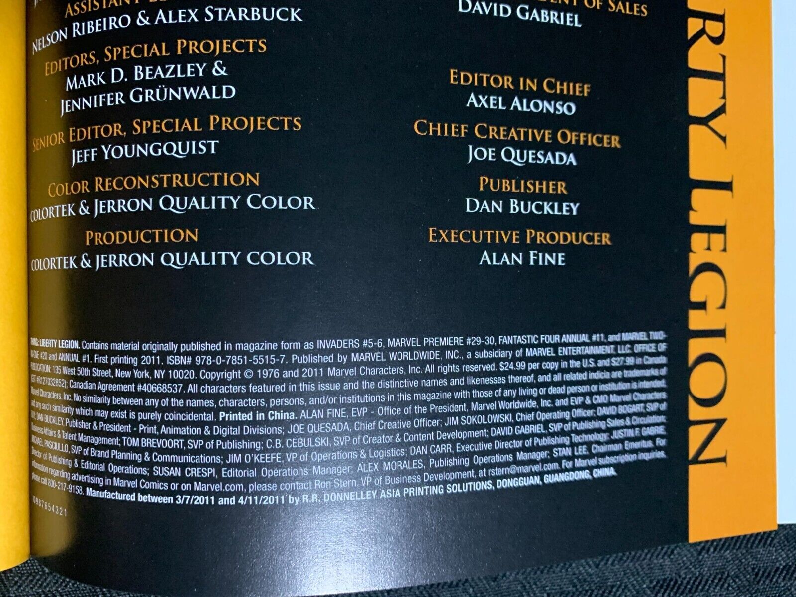 2011 THE THING Liberty Legion HC/DJ VF+/FN+ 1st Marvel Comics