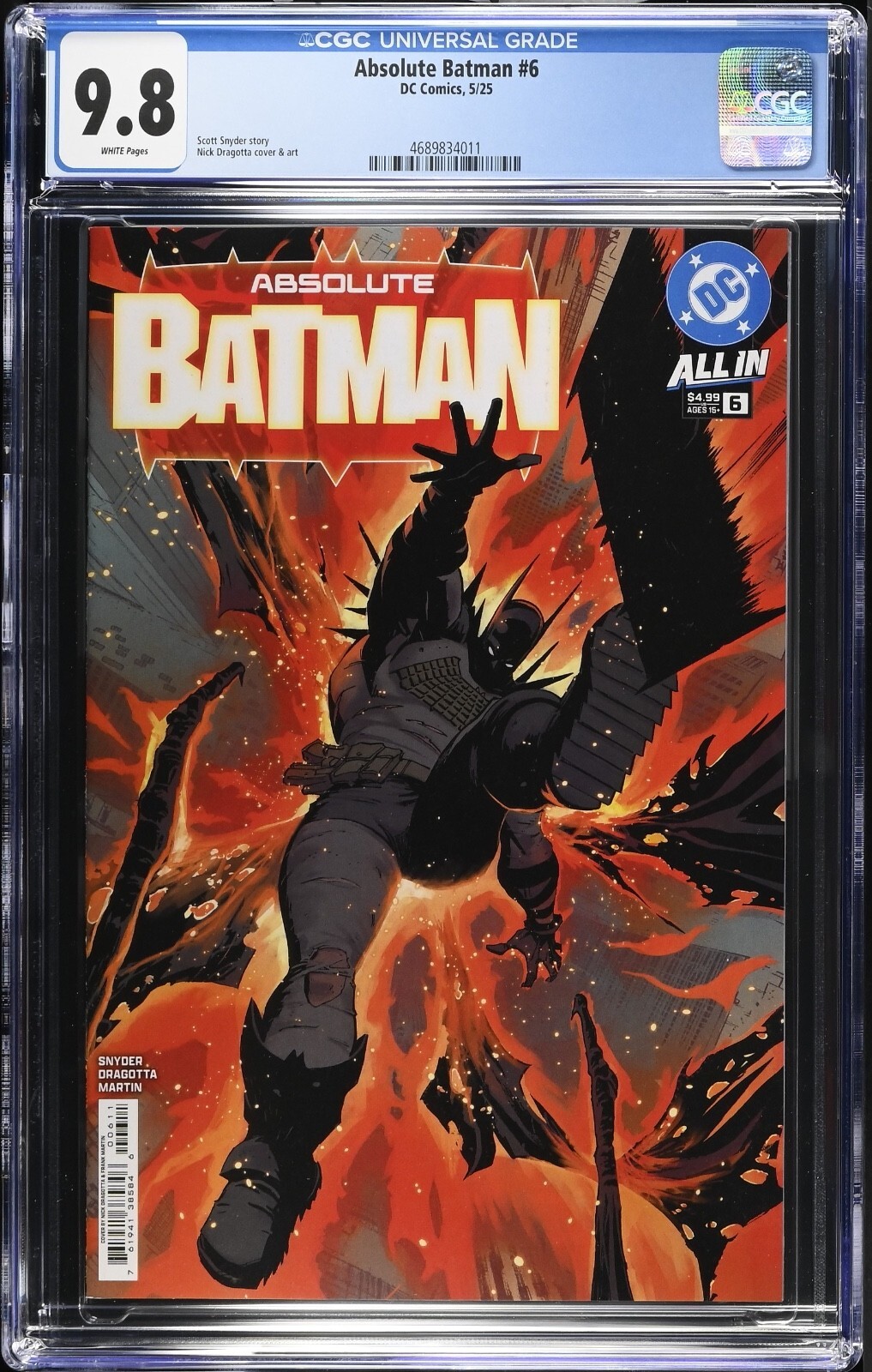 Grade: 9.8 Near Mint/Mint IN STOCK NOW!This is a copy of the 1st Print variant cover 'A' to ABSOLUTE BATMAN #6. Comic comes CGC Graded 9.8 with White Pages Shipping is $15.00 (international must pay extra)