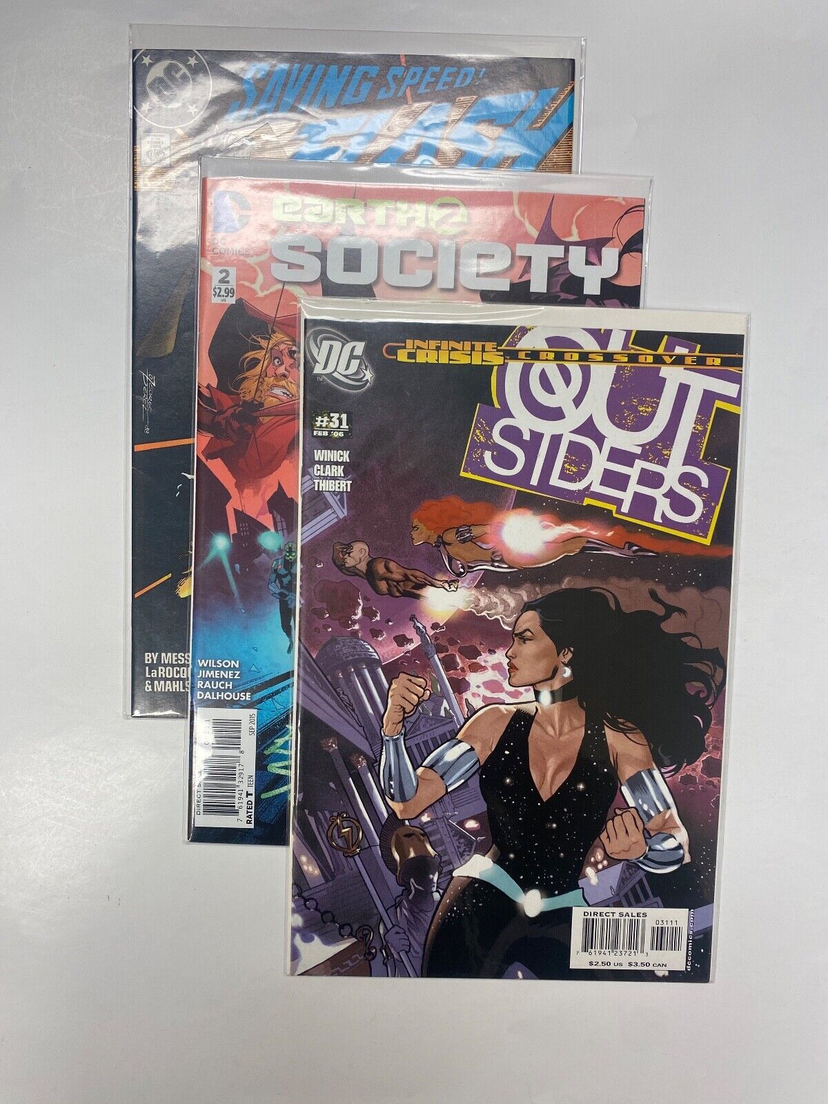 3 DC COMICS Flash #16 Earth 2 Society #2 The Outsiders #31 83 KM5