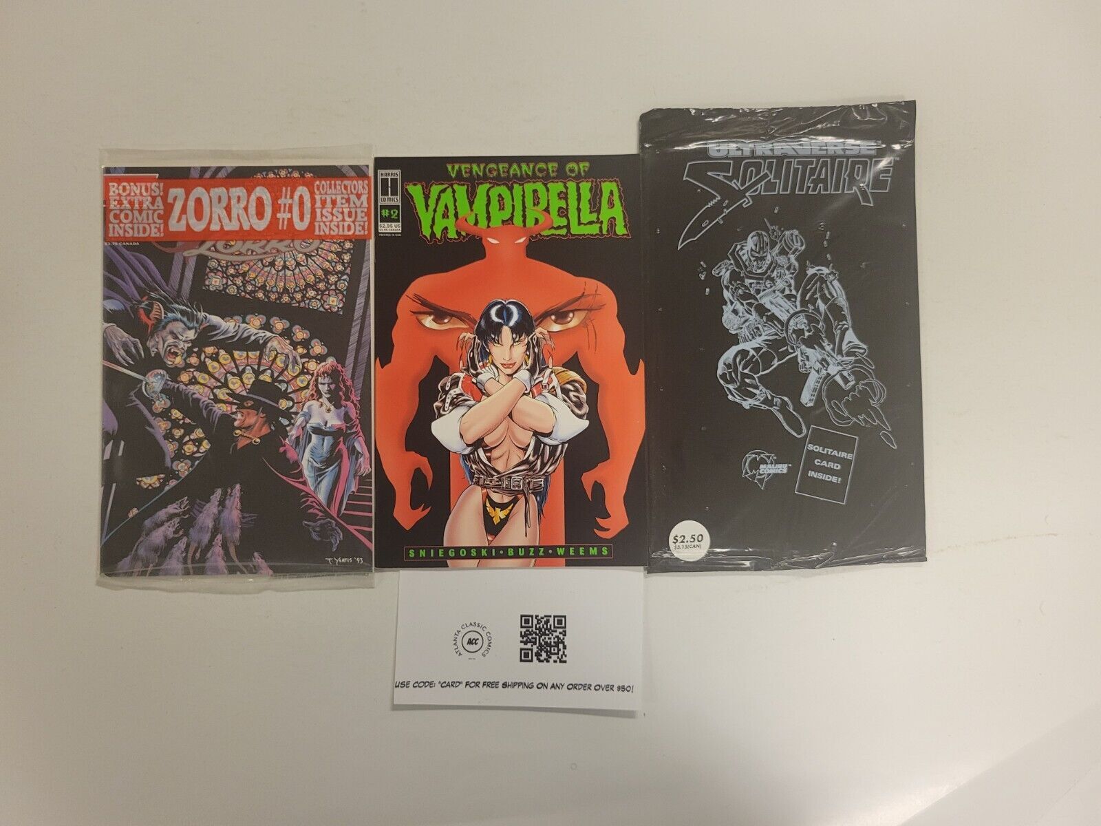 3 Malibu Topps Comics #2 Vampirella + #0 Zorro + #1 Solitaire 7 TJ27