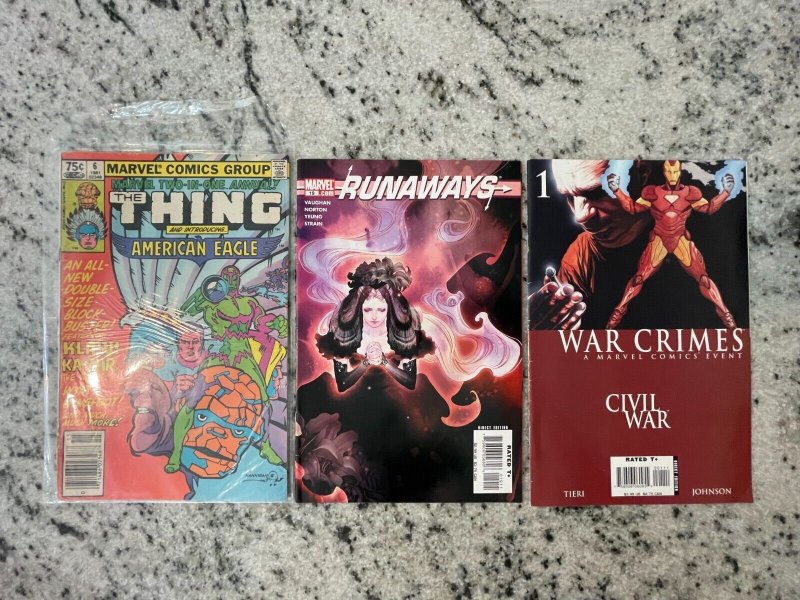 3 Marvel Comics War Crimes 1 + Runaways 19 + Two-In-One Annual 6 Thing 39 J861