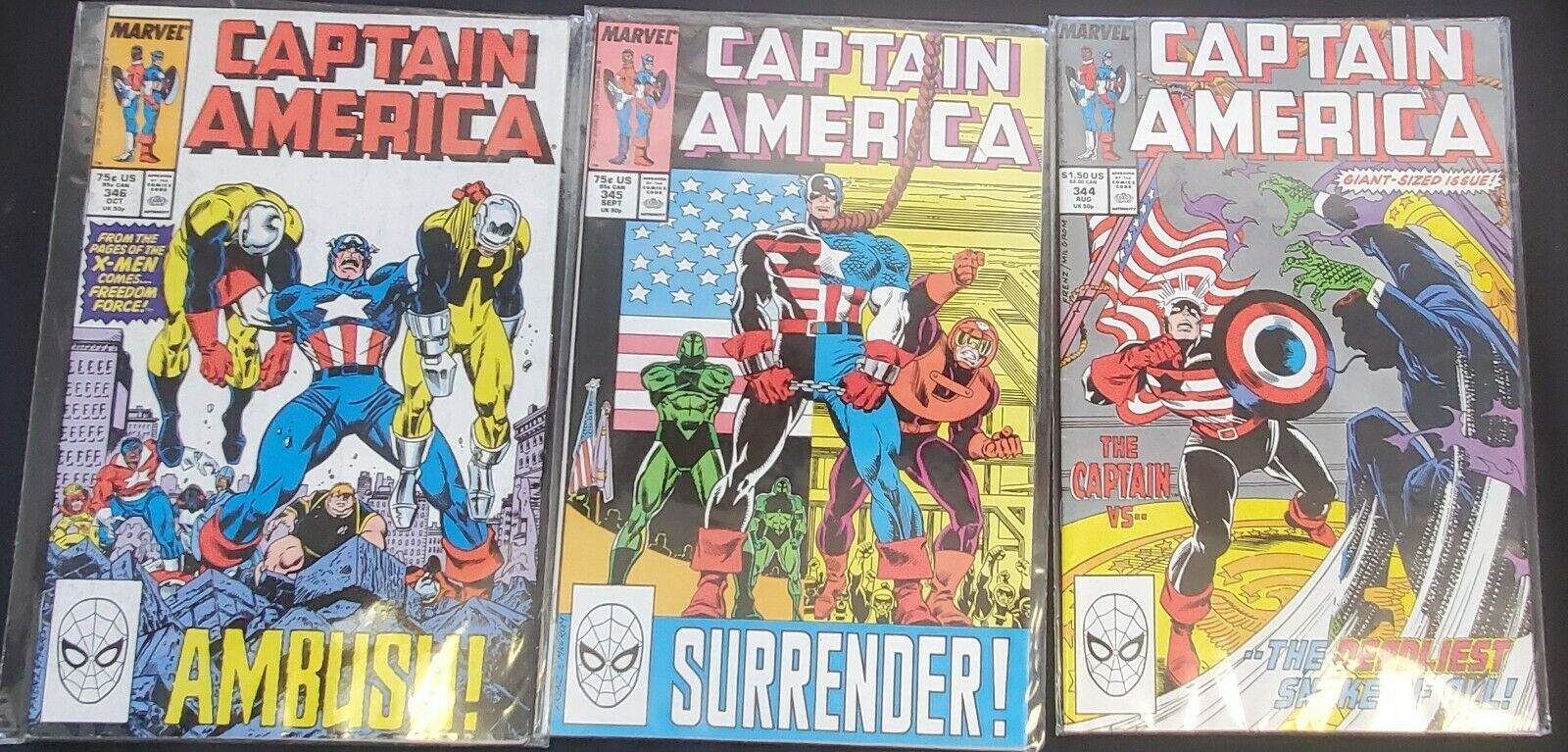 3PC CAPTAIN AMERICA LOT (8.0) #344-346!! 1988