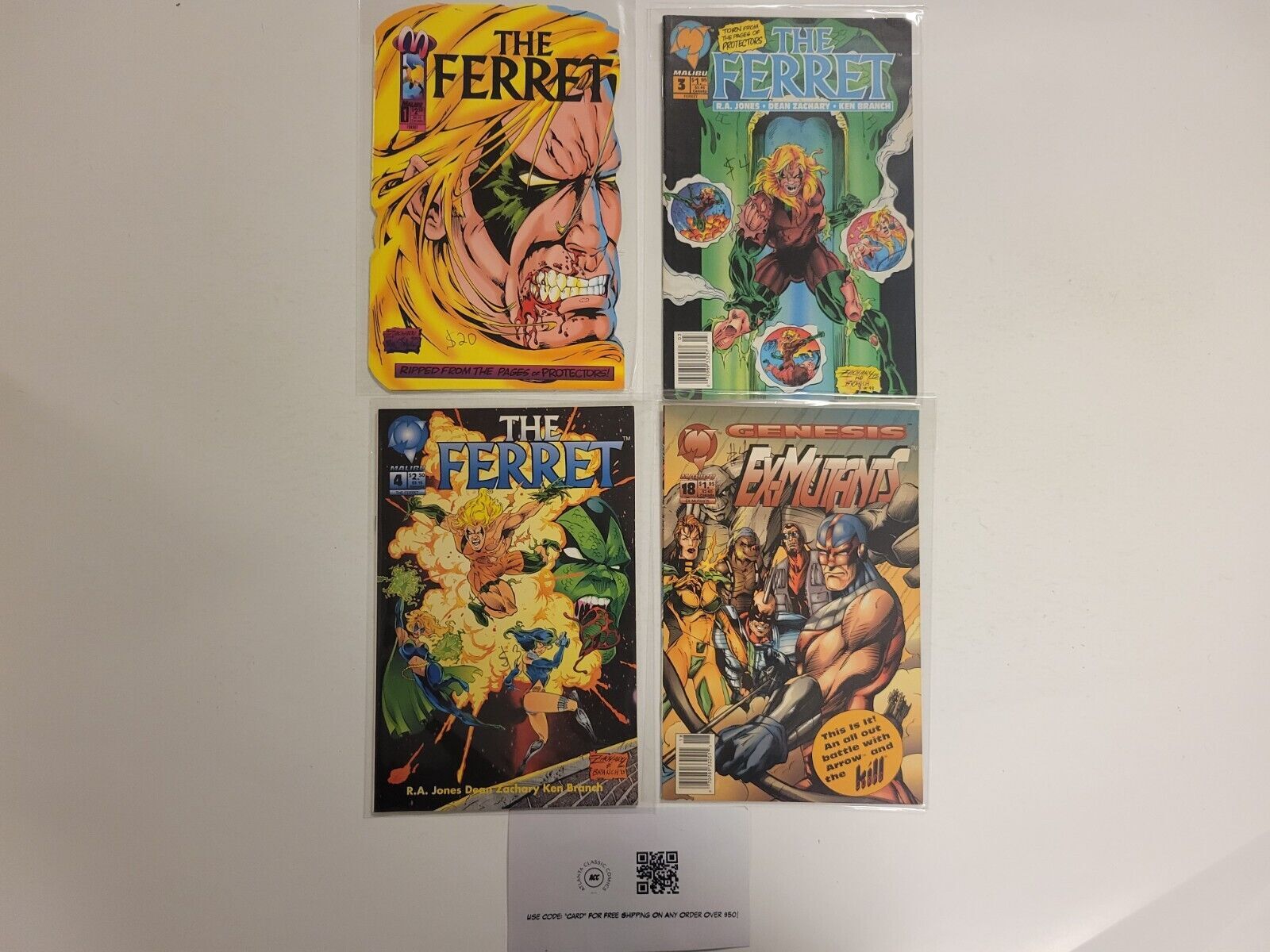 4 Malibu Comics #1 3 4 The Ferret + #18 Ex-Mutants 52 TJ12