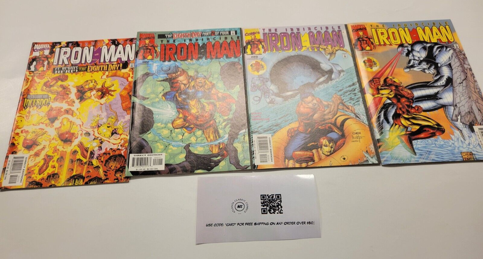 If you combine auction items with BIN (Buy It Now) items, the shipping rates divert to our combined shipping rate tables & we do not offer free shipping. * Important Stuff! ***If you combine listings that offer free shipping with listings that do not, our combined shipping rates (listed below) will be applied to the whole order, and the order will not ship for free unless all items apart of the combined order offered free shipping on their individual listings.**In Addition, if you combine multiple items, the combined shipping rates we'll use are whatever the most expensive displayed option is. Domestic Combined shipping rates:2-5 Books $6.98 6-12 Books $7.9813-20 Books $8.98 21-30 Books $9.9831-45 Books $10.98 46-65 Books $11.9866-85 Books $14.98 86-115 Books $19.98*If you have over 2 TPB/Graphic Novels in one invoice an additional charge of $1/per 3 TPB's will apply.** If your order is over 10 total listings, we'll charge an extra $1 per 10 items. So 10-19 items would be the above combined shipping rate + $1. 20-29 + $2, etc.International Shipping:International Bidders / Buyers are welcome. Please wait before paying so we can invoice you with the correct shipping charge. Feel free to request an exact amount from us prior to buying as Hip's shipping calculator can be incorrect.Condition Information:We attempt to provide an accurate grade to any single issue we sell. This grade can be found in the listing title using one of the following distinctions: GD (2.0), VG (4.0), FN (6.0), VF (8.0), NM (9.4), or a combination of two of them. On lots of books, in general, almost all of the issues we sell are going to be in AT LEAST VG condition.That being said, please look closely at the provided images of the book(s) you are buying; as you will receive exactly what is pictured.* Less Important Stuff! *We accept payments via Hip managed payments. Local Pickup is available in Atlanta.We buy comic book collections of any size, graphic novels, toys, original art, Funkos, & records! Feel free to message us for more details.Please reach out to us if ANYTHING about the item you buy isn't satisfactory before leaving less than positive feedback. We will be happy to resolve any issues and would appreciate the opportunity to do so before something less than positive is said. We're only human and are totally capable of making mistakes so please offer us the courtesy of coming to us first so we can fix whatever is/was wrong with your order.All pictures/scans are of the books you will actually be receiving & all books are sold "As Is". We DO NOT use stock photo's.Return PolicyALL Returns ARE accepted. We charge a 15% restocking fee for a non-shipping damaged OR disclosed defect return. Meaning, if you'd like to return a book that arrived safely as pictured with no additional or undisclosed defects, that's when the restocking fee is assessed. We reimburse original shipping if an item is returned because it arrives damaged or with an undisclosed defect. We do not reimburse original shipping if an item is returned "just because." We do not reimburse return postage in either scenario.Seller Information