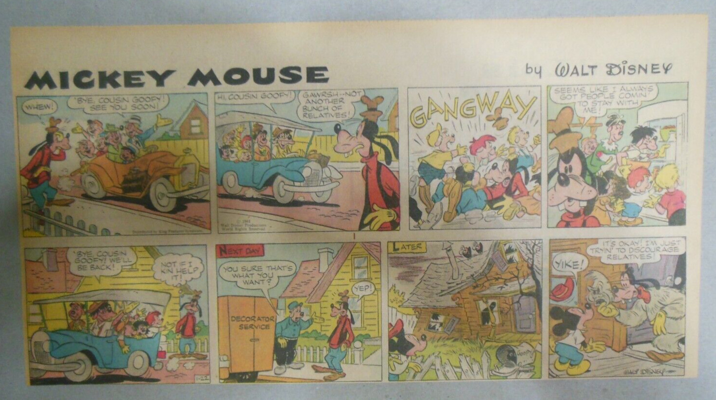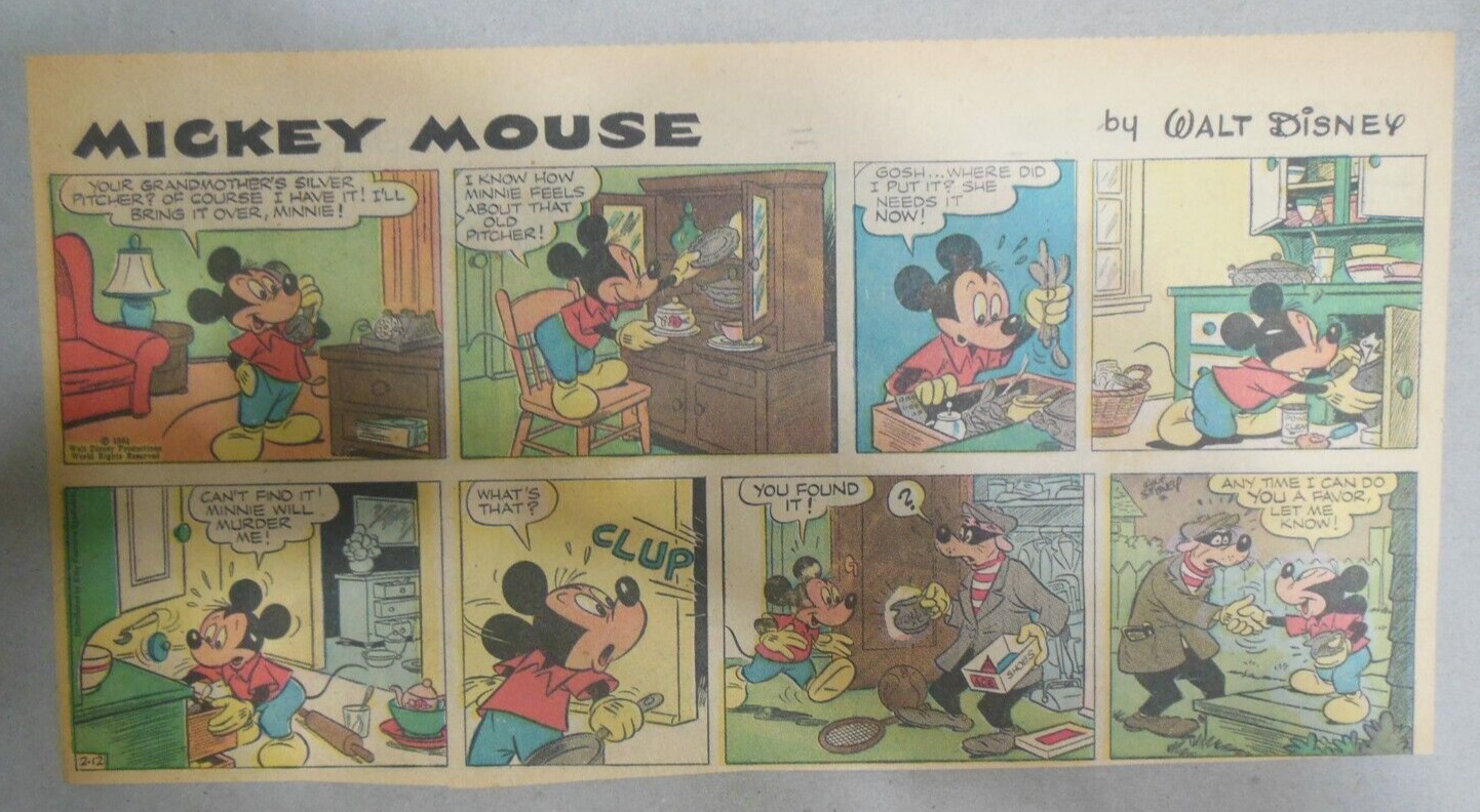Condition: Paper: some light tanning,otherwise: Excellent! Pulled from Loose Sections! (Please Check Scans) A ... Read more about the seller notes Paper: some light tanning,otherwise: Excellent! Pulled from Loose Sections! (Please Check Scans) A few are trimmed as shown, a few have small archival repairs on the backside. Read Less about the seller notesThis is a (Near Complete Year !) of (46) Mickey Mouse Sunday Pages by Walt Disney. Great Disney Artwork! This was cut from the original newspaper Sunday Comics section of 1961. Size: Third Full Size: ~7.5 x 15 inches. Paper: some light tanning, a few have small archival repairs on the backside, otherwise: Excellent! Pulled from Loose Sections! (Please Check Scans) Free Postage ! Total postage on any size order (USA) $25.00 International Flat Rate. To receive combined postage automatically, Please do not pay one at a time, pay when you finish shopping or ask for combined invoice before paying, I combine postage on multiple pages. Check out my other auctions for more great vintage Comic Strips and Paper Dolls. Thanks for Looking!*Please note that while I mail packages out promptly, delays sometimes occur, these are due to the USPS.I always upload tracking # and have Proof of mailing. If USPS loses your package, I will send a Full Refund. *Please note: collecting and selling comics has been my hobby for over 30 years. Due to the hours of my job I can usually only mail packages out on Saturdays. I send out First Class or Priority Mail which takes 2-10 days or more to arrive in the USA and Air Mail International which takes 5 - 30 days or more depending on where you live in the world. I do not "sell" postage or packaging and charge less than the actual cost of mailing. I package items securely and wrap well. Most pages come in an Archival Sleeve with Acid Free Backing Board at no extra charge. If you are dissatisfied with an item. Let me know and I will do my best to make it right. Many Thanks to all of my 1,000's of past customers around the World. Enjoy Your Hobby Everyone and Have Fun Collecting!