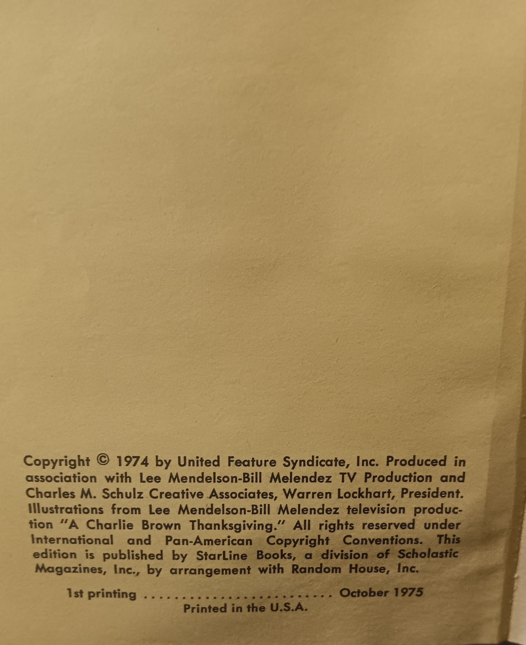 A CHARLIE BROWN THANKSGIVING (1975)Written by Charles M. Schulz