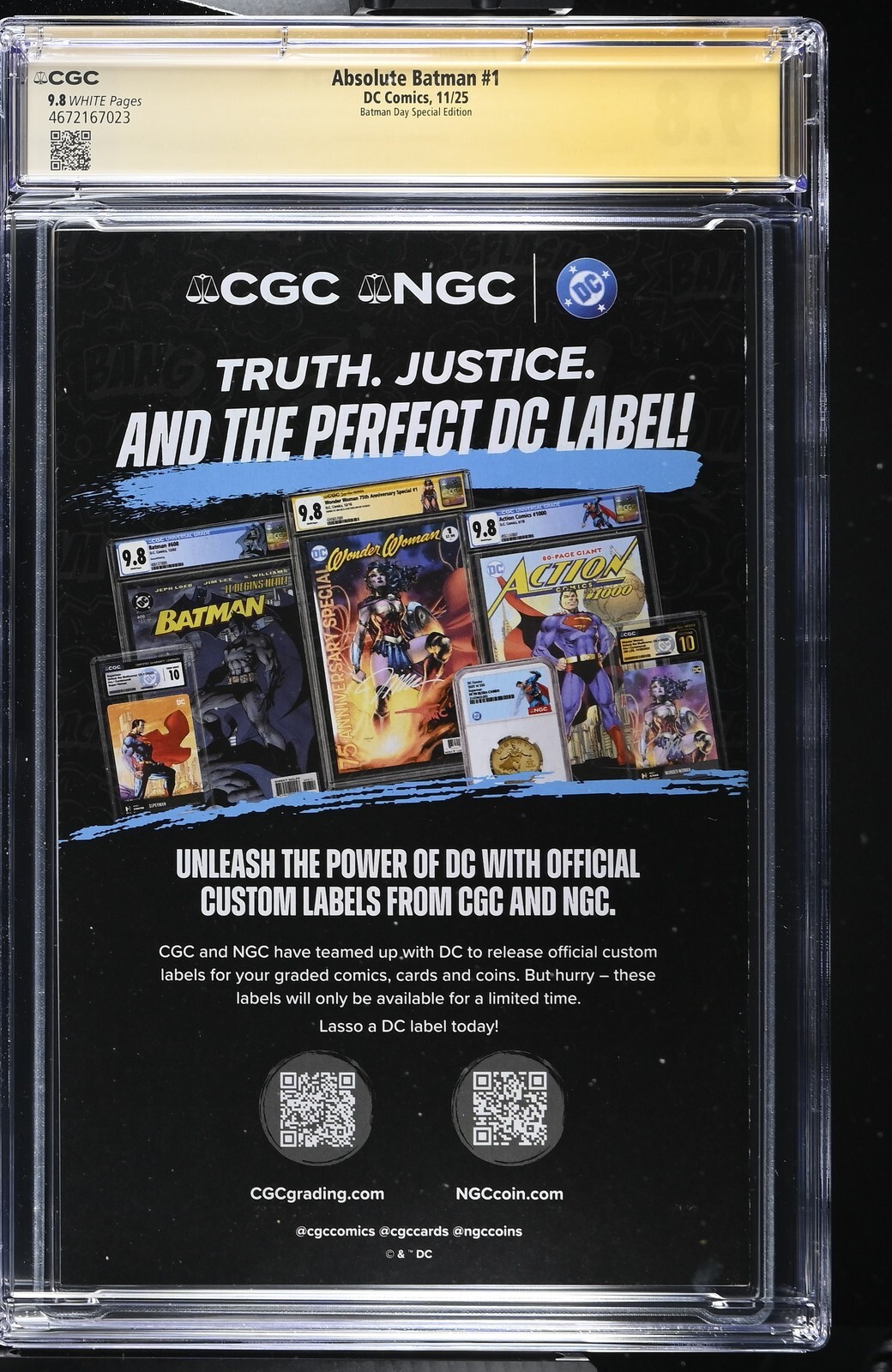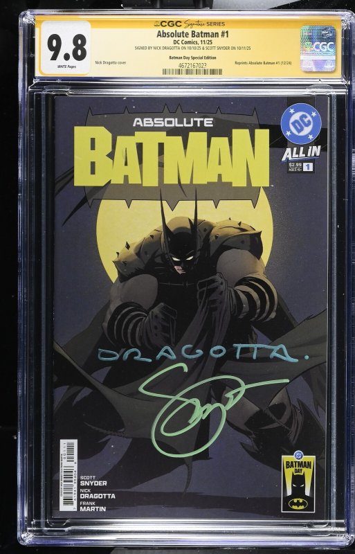 ABSOLUTE BATMAN #1 DC COMICS BATMAN DAY 2X SIGNED DRAGOTTA/SNYDER CGC SS 9.8 NM