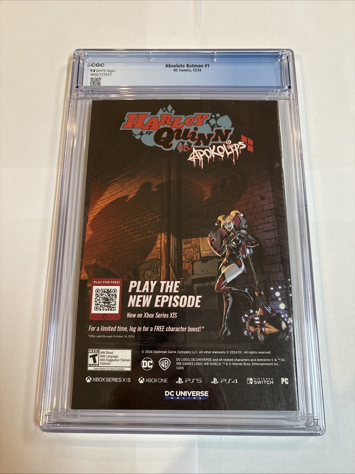 Grade: 9.8 Near Mint/Mint Dive into the gripping world of Gotham with "Absolute Batman (2024) #1," a must-have for any fan of the Dark Knight. This first print edition, freshly minted in 2024, showcases the remarka ... Read More