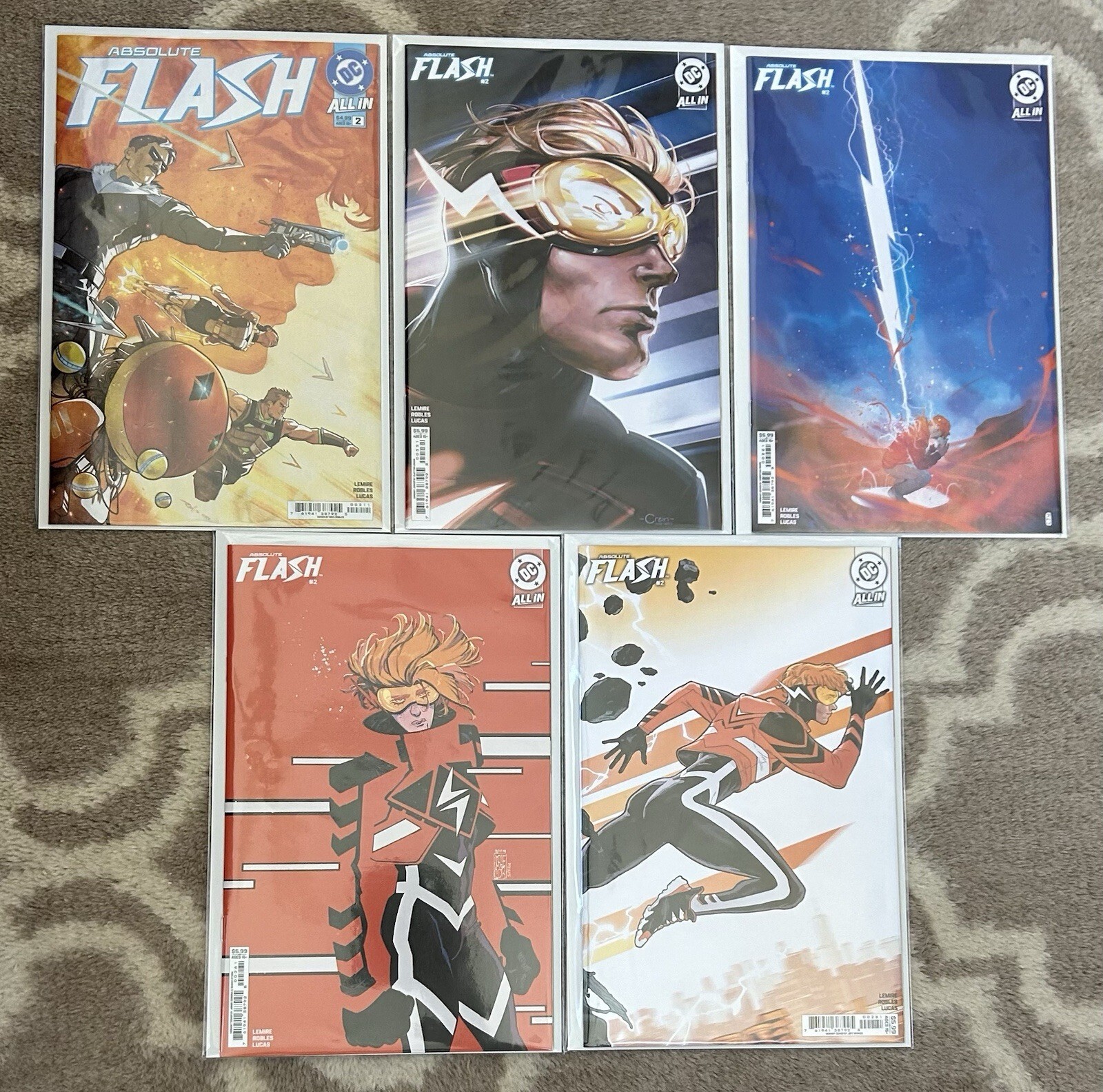You are buying:Absolute Flash #2 Jeff Lemire Robles Crain Ward Corona Spokes NM LotPlease see pics