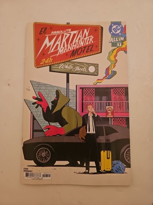 Issue 7 cover A Absolute Martian Manhunter Deniz Camp and Javier Rodriguez Diego Higuera of ComicsBeat says this: "Camp truly sells the absurdity of this entire confrontation, at this point if you follow what Camp releases you know he can write extraordinarily well. It’s a feat of comics storytelling that a battle that can’t be seen by the naked eye is so clear to readers. In part due to the way this comic can keep you glued to the pages, but also Rodriguez artwork manages to explain the unexplainable., allowing readers to enter the eye of the Martian. Rodriguez’s artwork doesn’t just illustrate Camp’s vision, it expands it. The fluidity of the linework and the way color is wielded to reflect shifting emotional and psychic states creates a reading experience that is as intuitive as it is surreal. You feel every ripple of John’s turmoil, every crack in the mask he wears, and when that mask finally falls, Rodriguez doesn’t hold back. The page explodes, not with chaos, but with clarity. Light floods in. It is not simply beautiful, it is revelatory."Seller Information