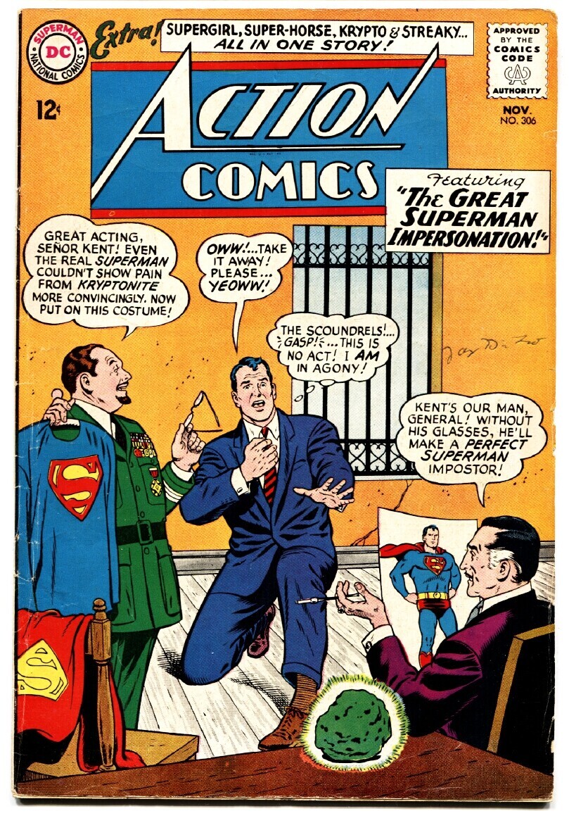 Grade: FN-ACTION COMICS #306 comic book 1963-Superman-Kryptonite cover-SUPERGIRL Supergirl issue. Grade: FN- SKU: U2-120-100