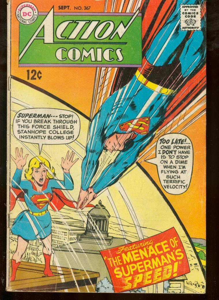 ACTION COMICS #367 DC SUPERMAN 1968 SUPERGIRL G Classic Superman story. Superman is flying too fast. Stanhope College cover. 1968 Grade: G SKU: U3-12-091