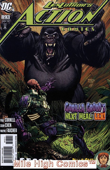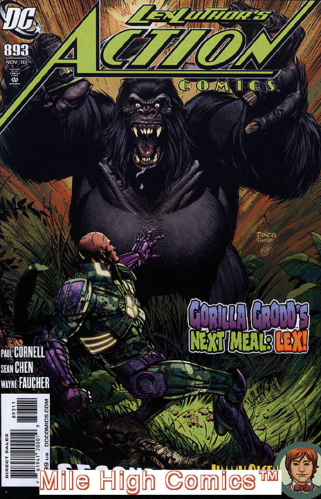 Please note: this is only one of the many thousands of back issue comics, magazines, comics trade paperbacks, and comics hardback collections that we list for sale on Hip. We stock over eight million comics and books in our Denver warehouse, and our gigantic 35,000 square foot Central Denver Mega-Store. Please enjoy shopping! In addition to our low prices, you can also combine an unlimited number of comics (up to 20 comics) and books into a single order for only a $6.95 shipping charge for delivery anywhere in the USA, and $25.00 shipping on most International orders. An important note: the cover photo of the item shown in this listing, is not a scan of the actual item. We sell well over one million back issue comics a year, and thus have a huge library of past scans that we utilize to illustrate the books that we are offering on Hip. Below we have listed a very detailed written description of our grading standards for this particular book. If the issue that we send you fails to meet any part of our grading criteria, we'll arrange for a full refund. The final bit of information that you need to know about us is that our Hip warehouse is closed on the weekends and holidays. We generally ship all our Hip orders Monday-Friday, and with the exception of orders arriving on Friday, we generally can ship Hip orders within 48 hours. Happy Collecting! Chuck Rozanski, President - Mile High Comics, Inc. ACTION COMICS (Series Began 1938) (#0-600, 643-904) (DC) Issue #893 comics in Fair condition. Published by DC Comics .Fair - A copy in this grade has all pages and most of the covers, centerfold may be missing, if it does not affect the story, but price should be reduced; a book in this condition is soiled, ragged and unattractive. Creases and folds are prevalent and paper quality may be moderately low. Spine may be split up to 2/3 its entire length. Staples may be gone, and/or cover split up to 2/3 its length. Corners are commonly slightly rounded. If coupons are cut from front cover and/or back cover and/or interior pages the book will fall into this grade. Up to 1/4 of front cover may be missing. These books are mostly readable although soiling, staining, tears, markings or chunks missing my interfere with reading the complete story. Very often paper quality is low and may have slight brittleness around the edges but not in the central portion of the pages.We list over 200,000 items in our Hip Store. Shipping costs apply only to the first item. All additional items in the same order ship for free!The image in this listing is from a random copy of this product that we have had in stock recently. It probably will not be the item we send you, nor even representative of the grade of this item, but is meant to help you determine if this is the item you want.Seller Information